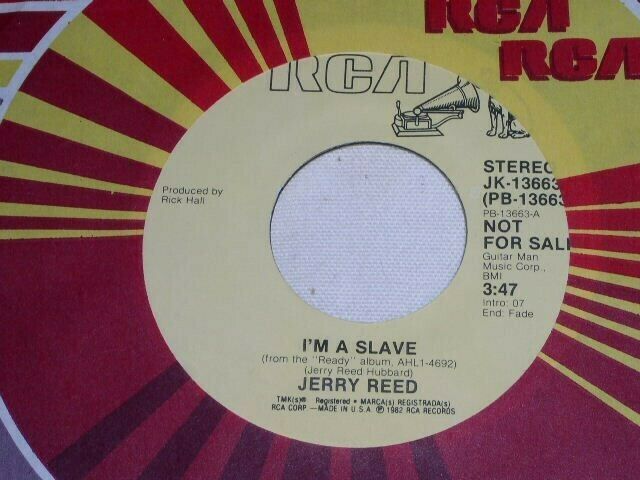 This is the original, vintage, promotional 45 rpm phonograph record by Jerry Reed entitled, "I'm A Slave". Same flipside. Record label RCA JK-13663.