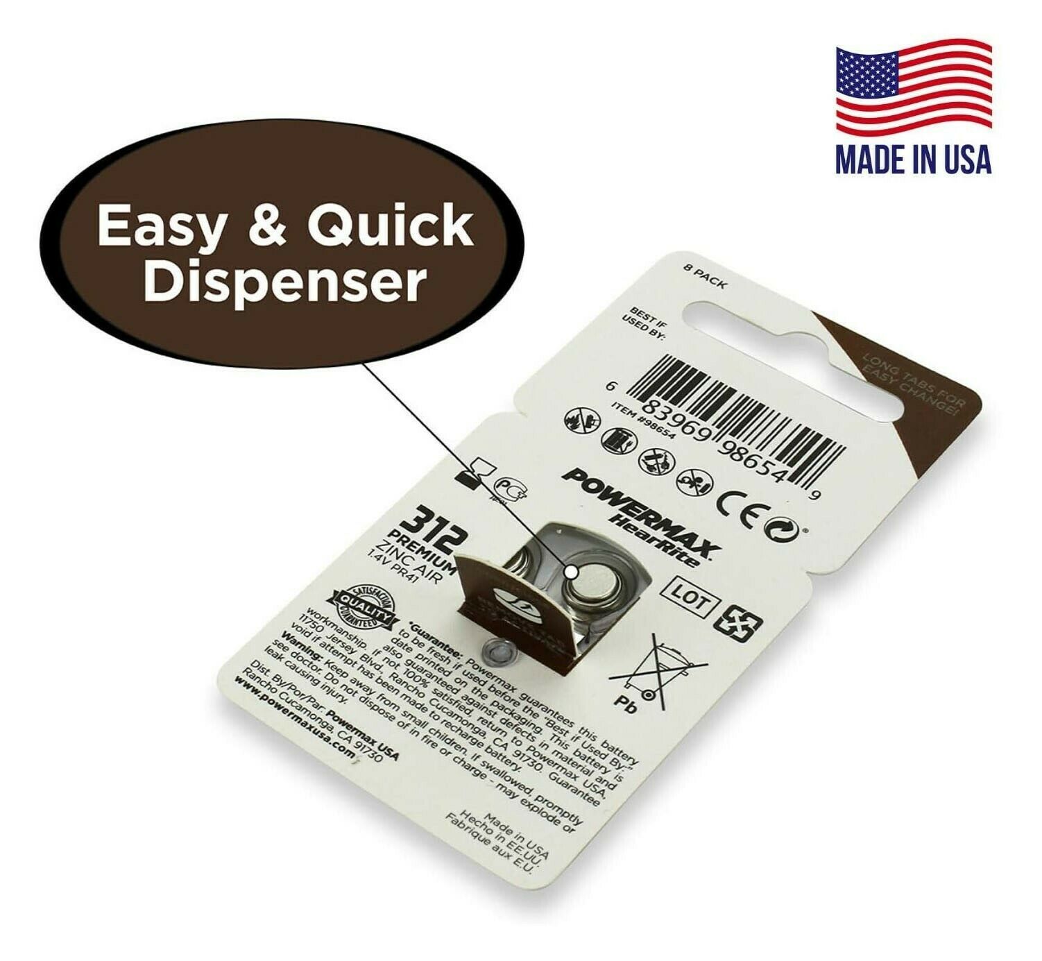 Hearing Aid Batteries Powermax Size 312 8 Pack #98654 Made In The USA