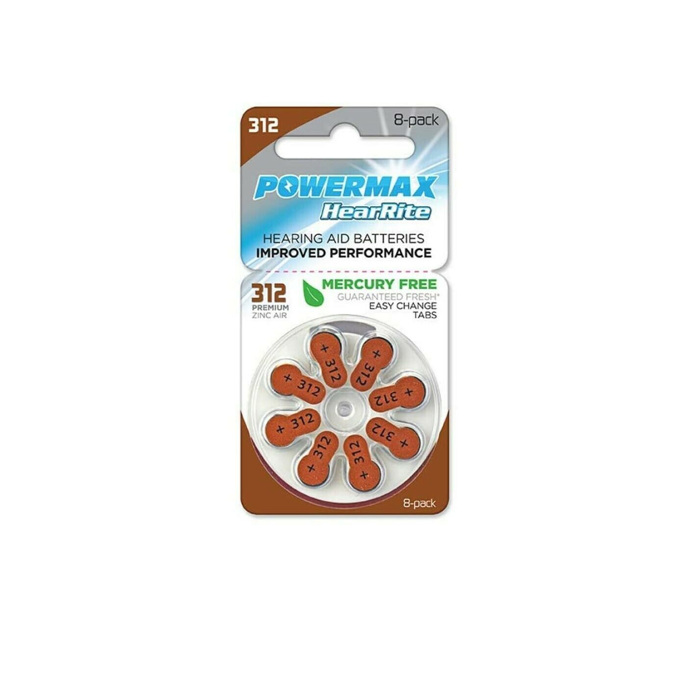 8 Pack of Powermax HearRite Mercury Free Hearing Aid Batteries Size 312