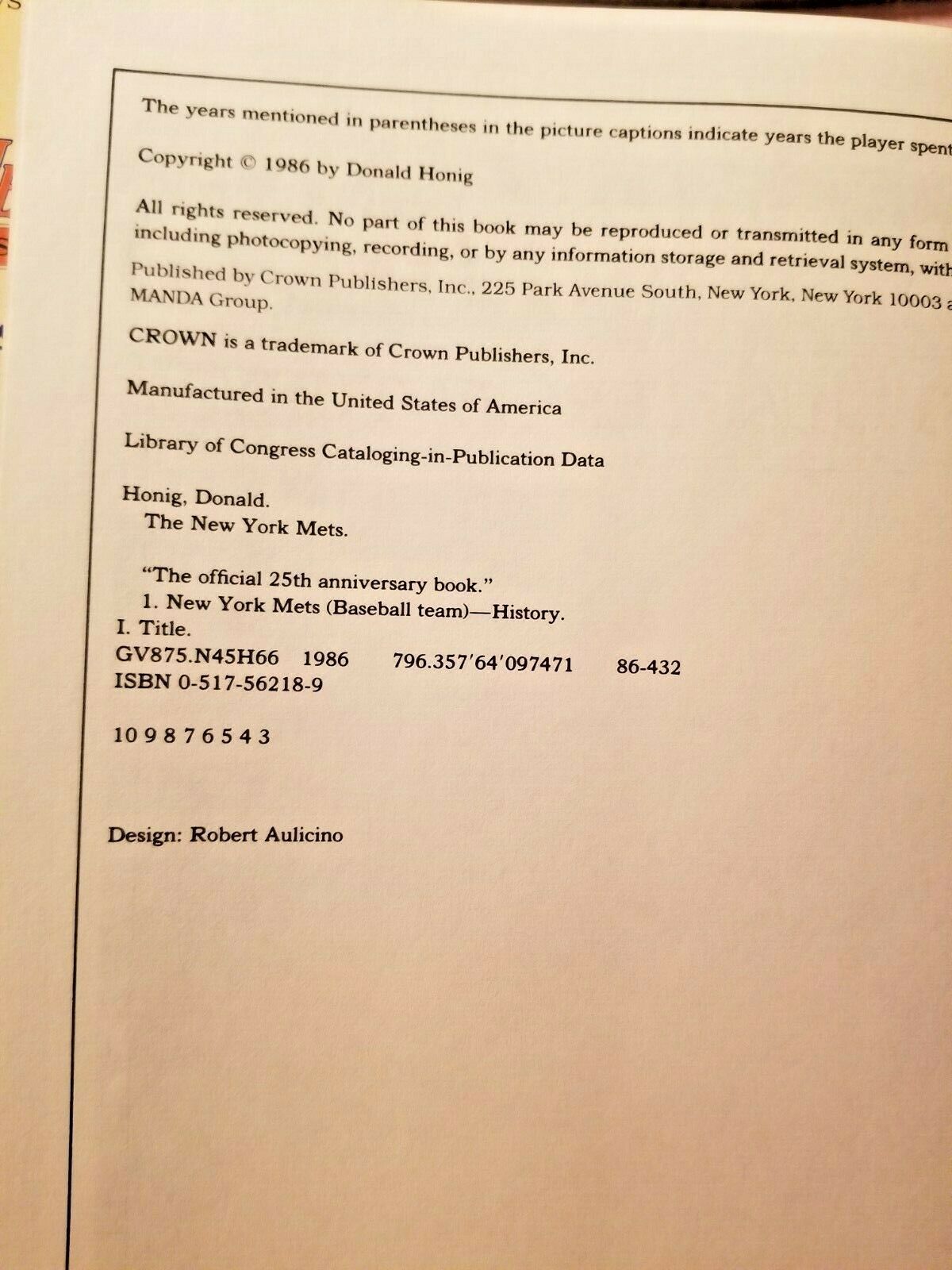 The New York Mets : The First Quarter Century (1986 HC/DJ) The Official 25th Anniversary Book Donald Honig