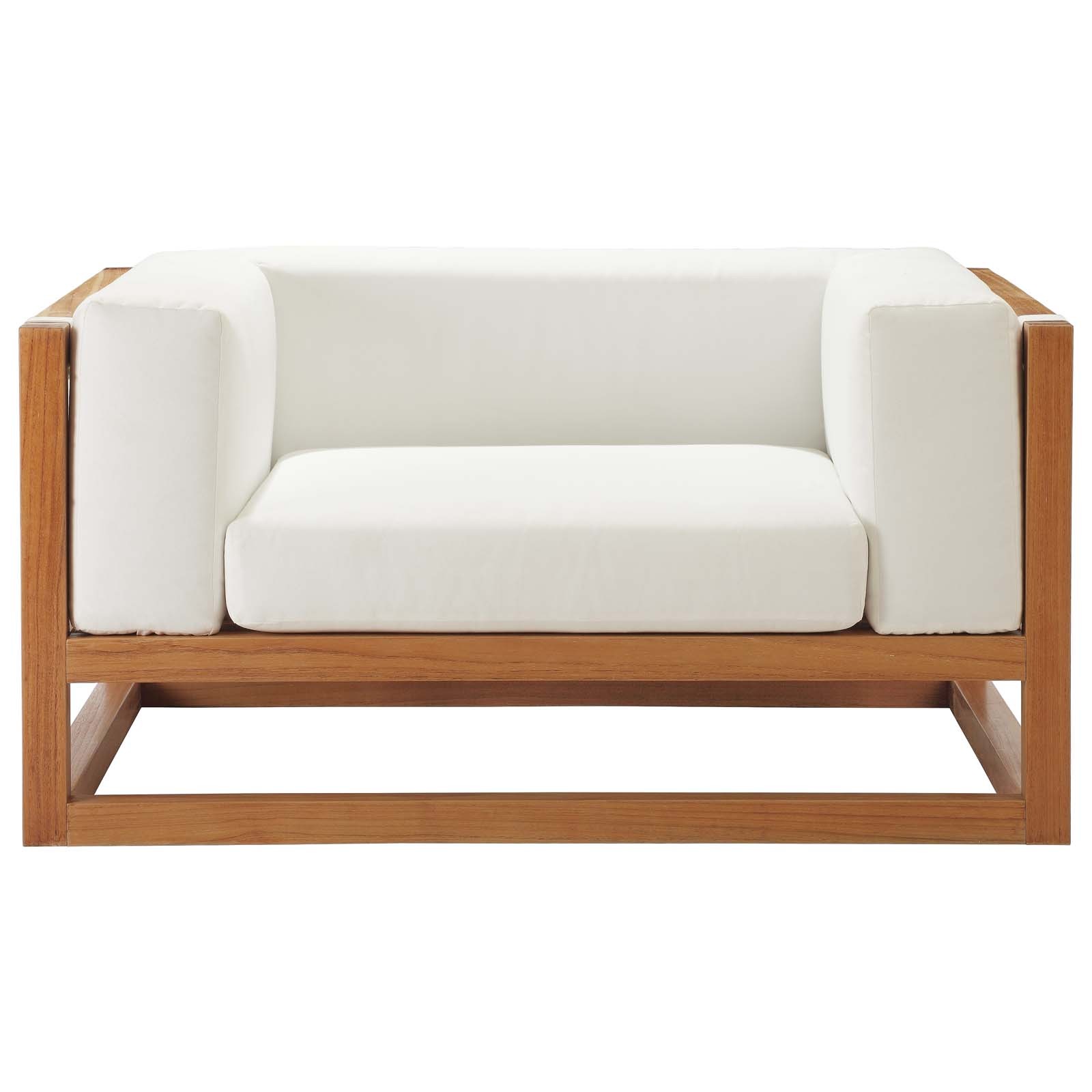 Experience wondrous sunsets and spirited al fresco dining with the Newbury Premium Grade A Teak Outdoor Patio Collection. Made of Premium Grade A Teak Wood, this teak armchair comes with machine-washable sun, stain, water, mildew, and fade resistant Sunproof Fabric for long-lasting use. A versatile addition to balconies, backyards, patios, gazebos, poolside or garden spaces, the Newbury Collection comes with matching armchair, sofa, ottoman, coffee table, and accent chair selections for a durable outdoor teak set that comes with a variety of dining and casual living seating options. Complete with a spacious, contemporary design, this installment of the series is an armchair. Set Includes: One - Newbury Accent Lounge Armchair