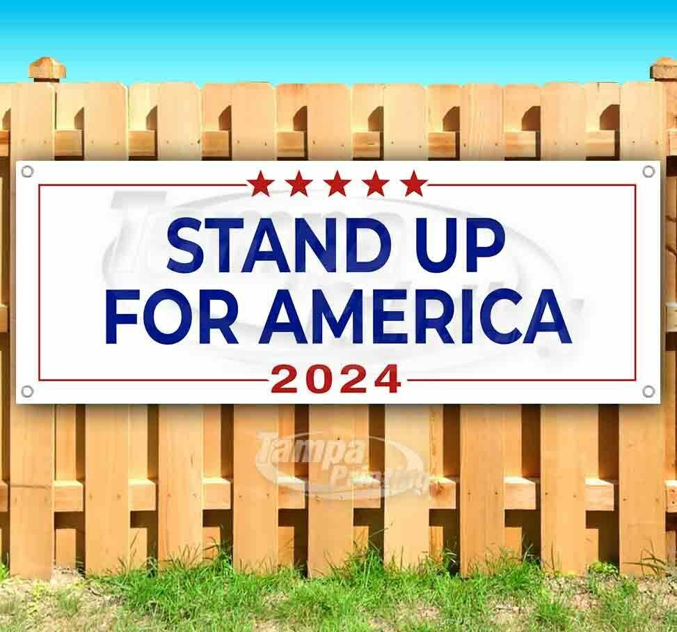 STAND UP FOR AMERICA 2024 Advertising Vinyl Banner Flag Sign RED BLUE MAGA TRUMP