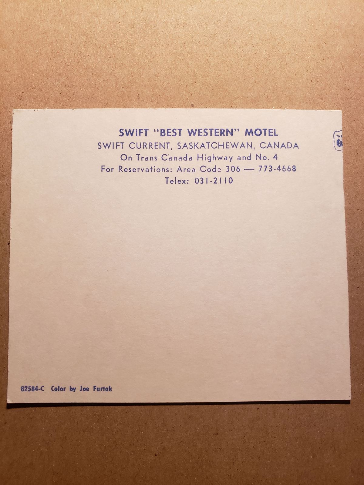 Up for sale is a vintage postcard. The post is a promotional piece from the Swift Best Western hotel in Swift Current Saskatchewan. The postcard features a photo image of the pool in the back of the hotel. The postcard is unposted and dates to the mid-1960s. What a great addition to any collection.