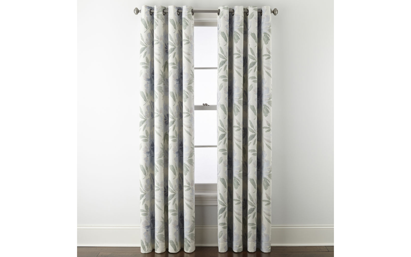 - (1) JC Penney Sullivan Blue Floral Blooms Blackout Grommet Curtain Panel 50 X 84