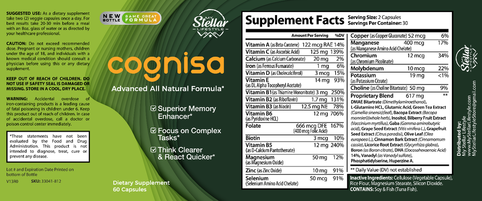10 Pack Cognisa, support memory and focus, advanced all natural formula-60 Capsules x10