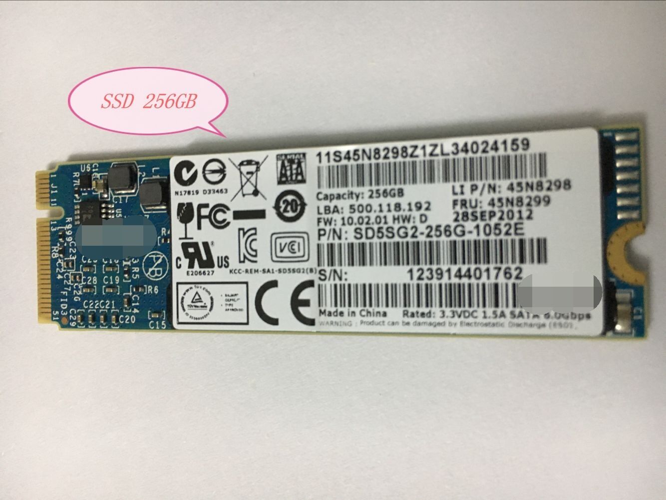 Note: SD5SG2-256G-1052E only for Lenovo Thinkpad X1 Carbon Laptop. Lenovo LI P/N:45N8298, FRU:45N8299.