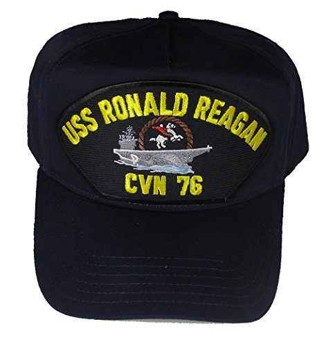 USS RONALD REAGAN CVN-76 HAT - LARGER PATCH SIZE Approx 6" x 3 1/4" - Adjustable Size, Navy Blue Golf Style Hat. Veteran Owned and Operated Business