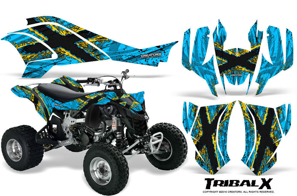 CAN-AM DS450 GRAPHICS KIT CREATORX DECALS STICKERS TRIBALX YELLOW-BLUEICE