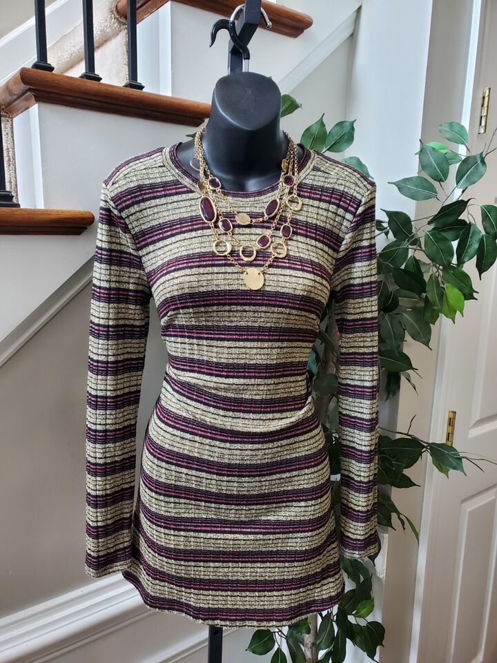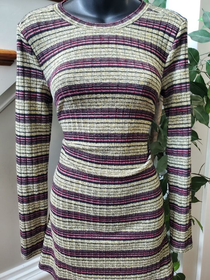 - BCBG Maxazaria Women Multicolor Round Neck Long Sleeve Knee Length Dress Size XS