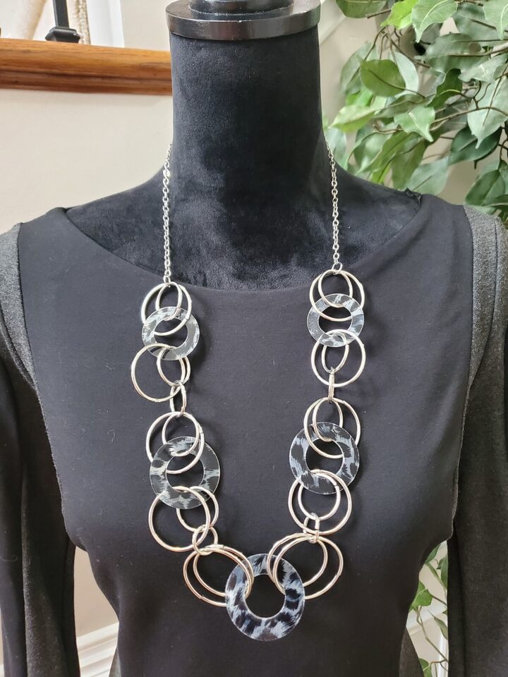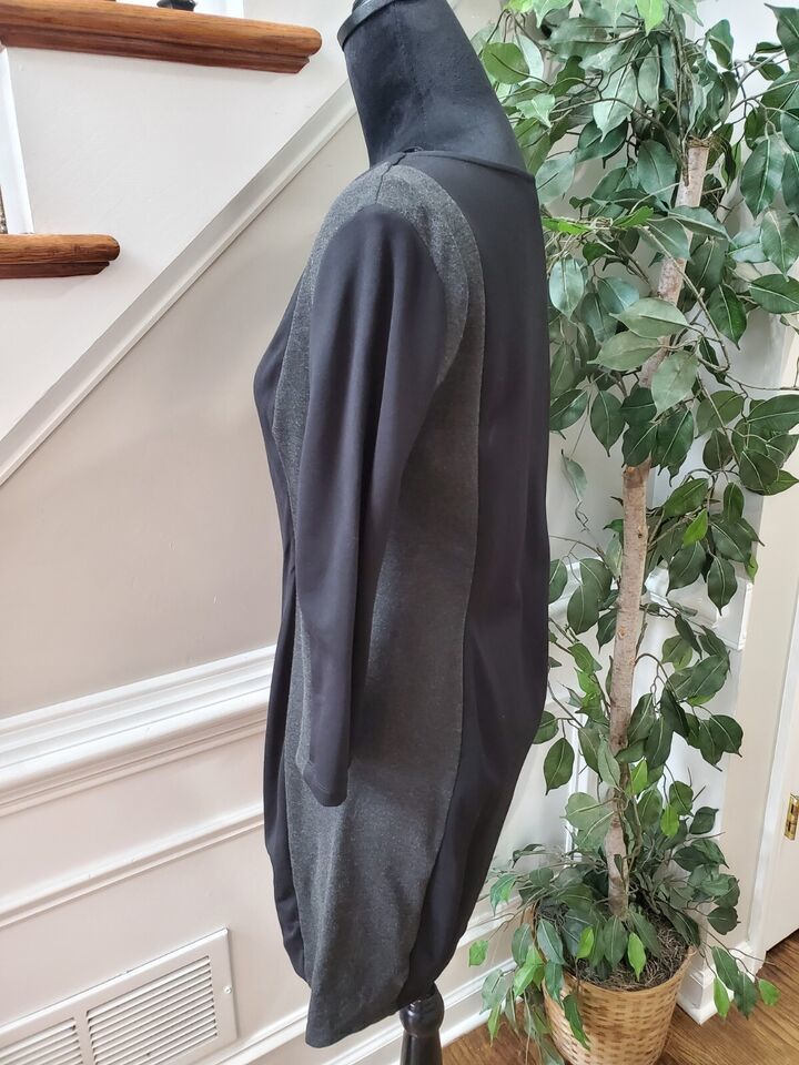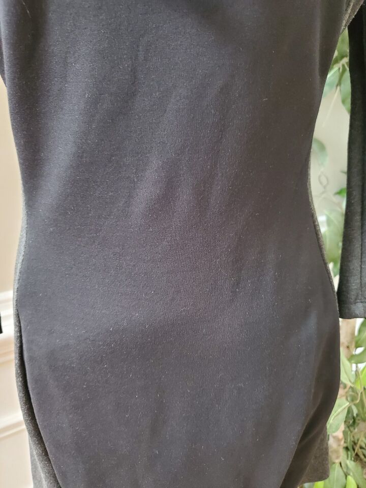 H M Womens Black Gray Viscose Round Neck Long Sleeve Knee Length Dress Medium.