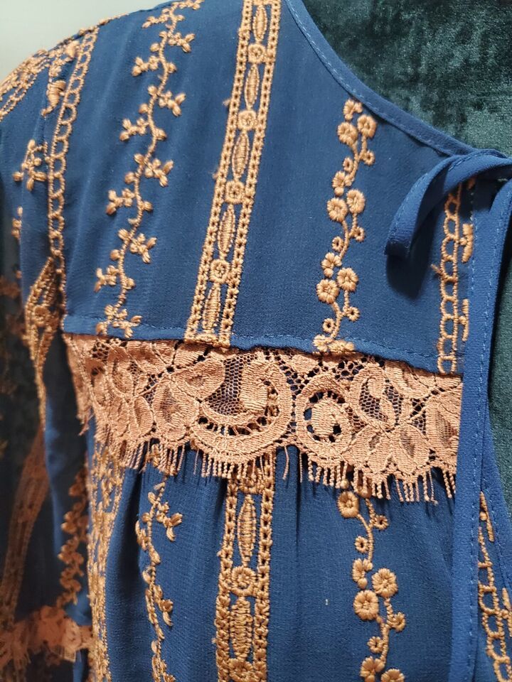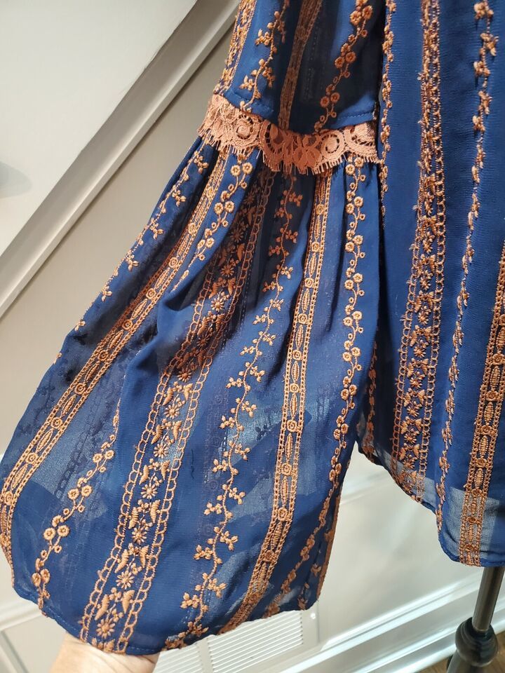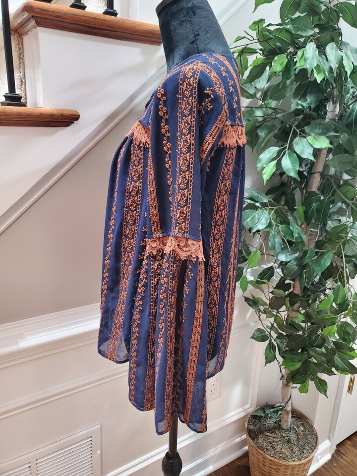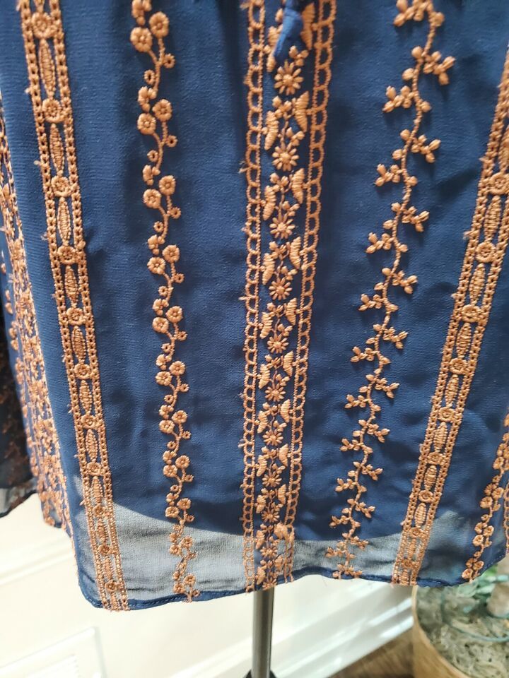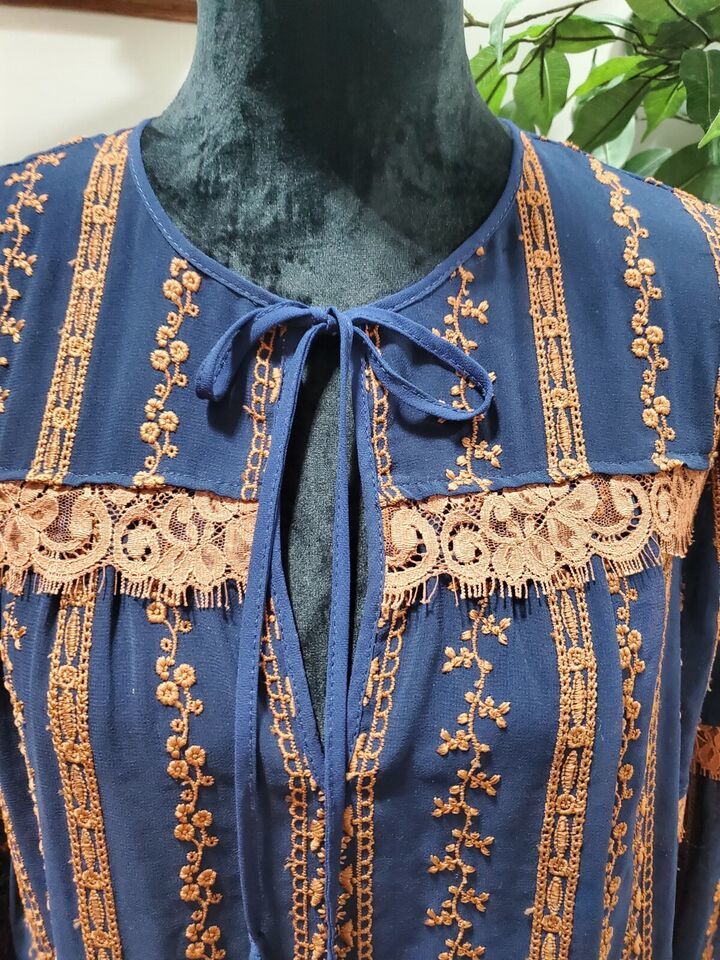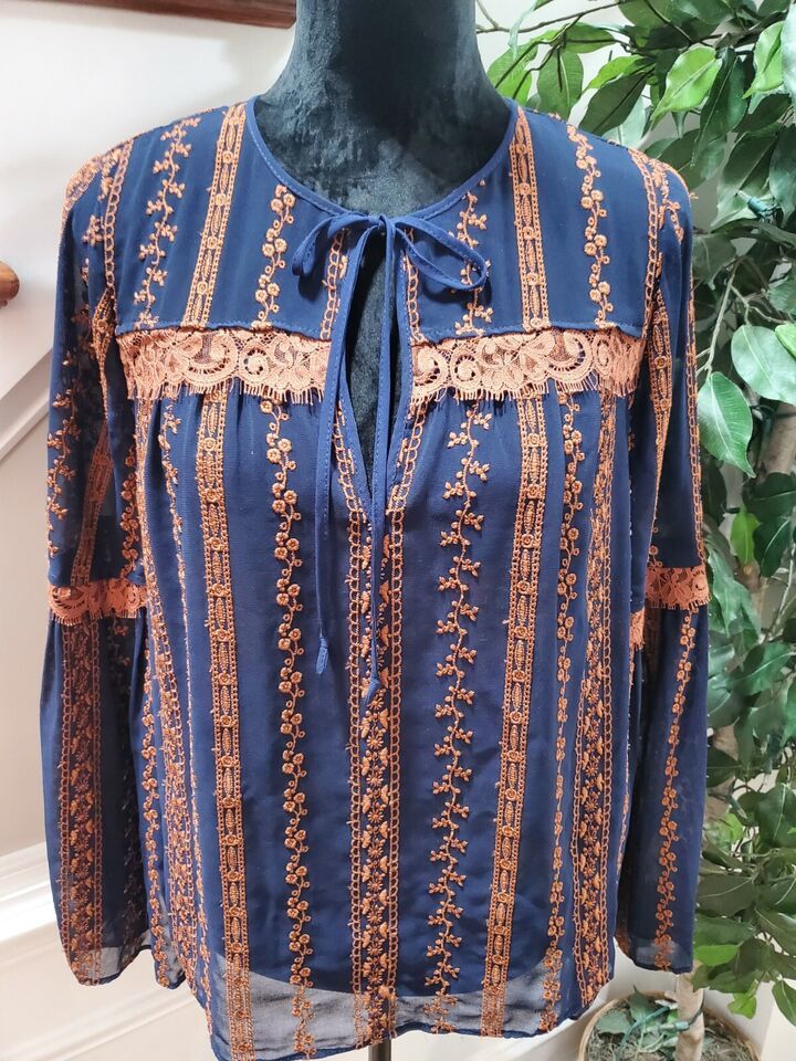 BCBG MAXAZRIA Women's Blue Polyester Long Sleeve Embroidered Blouse Size Small.