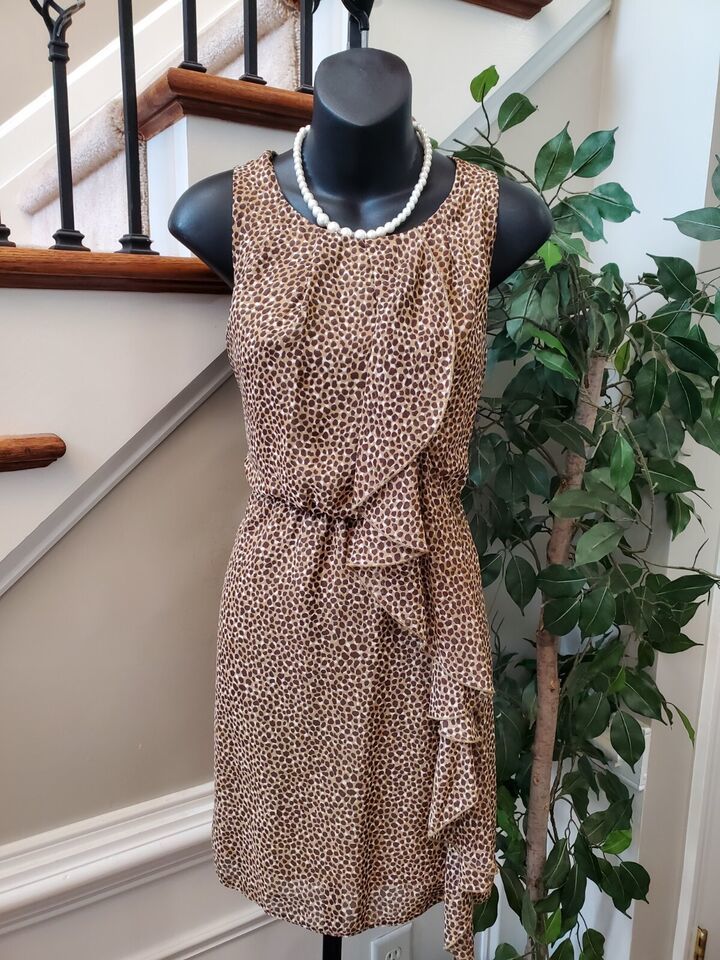 H&M Women's Beige & Brown Animal Print Sleeveless Round Neck Knee Length Dress 6