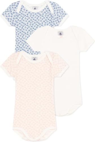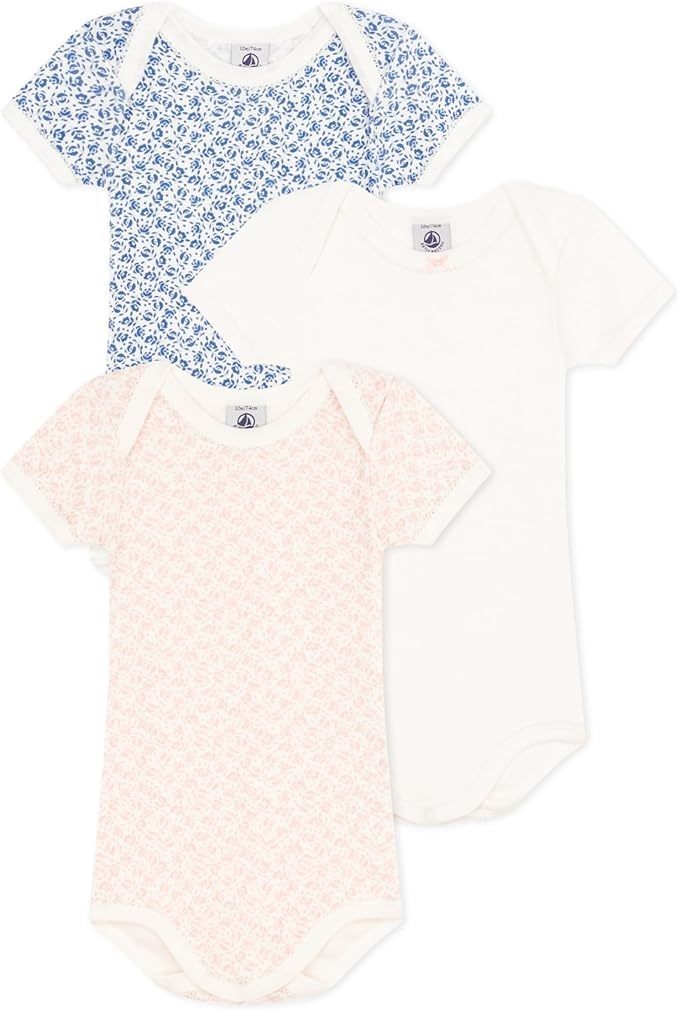 - Petit Bateau BABIES' SHORT-SLEEVED FLORAL COTTON BODYSUITS - 3-PACK SIZES 3-24 M
