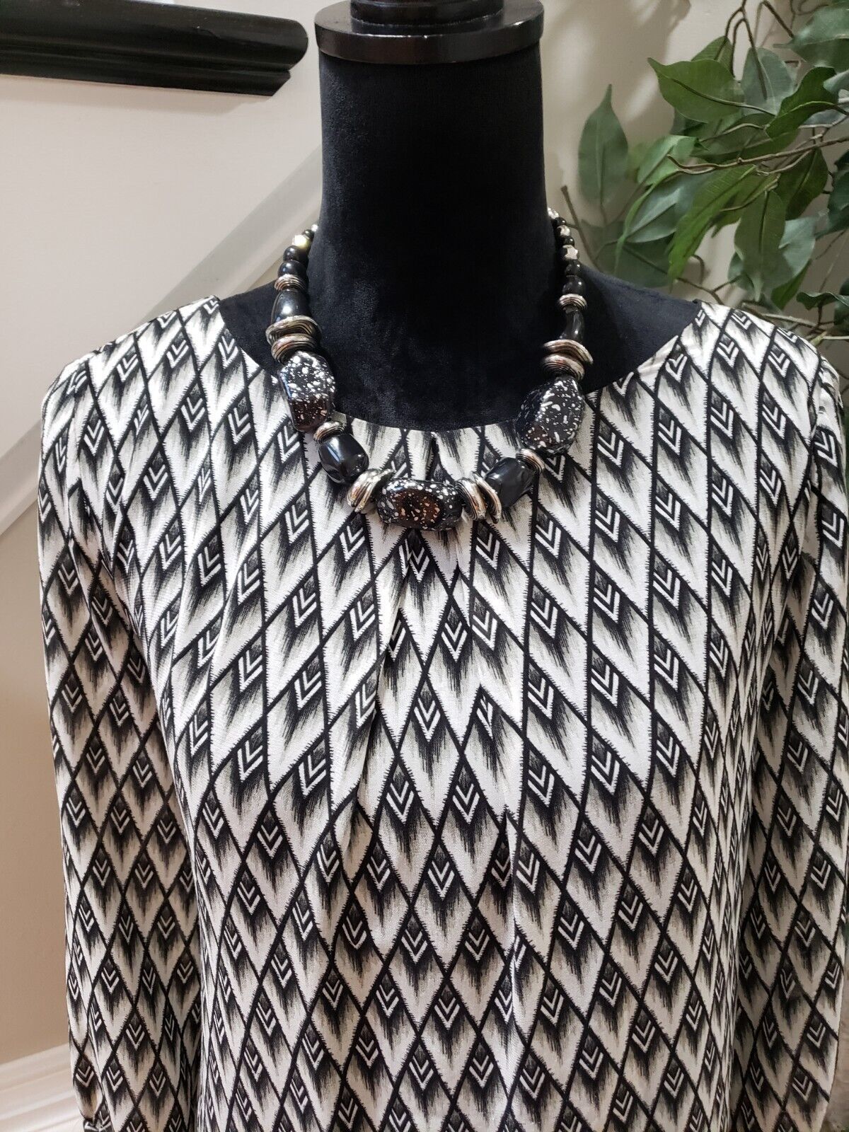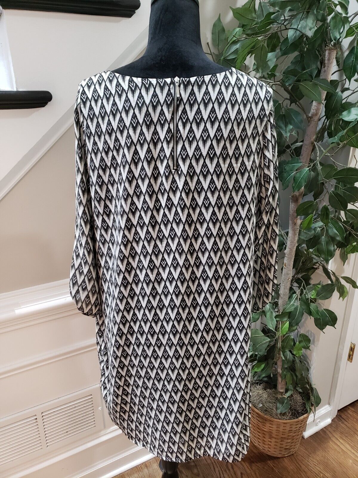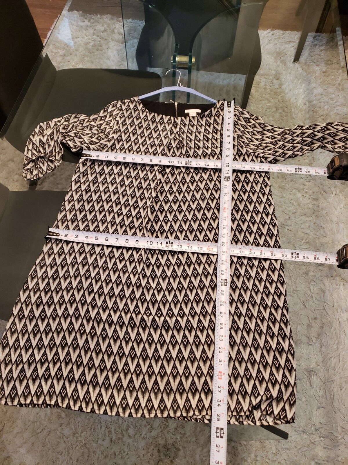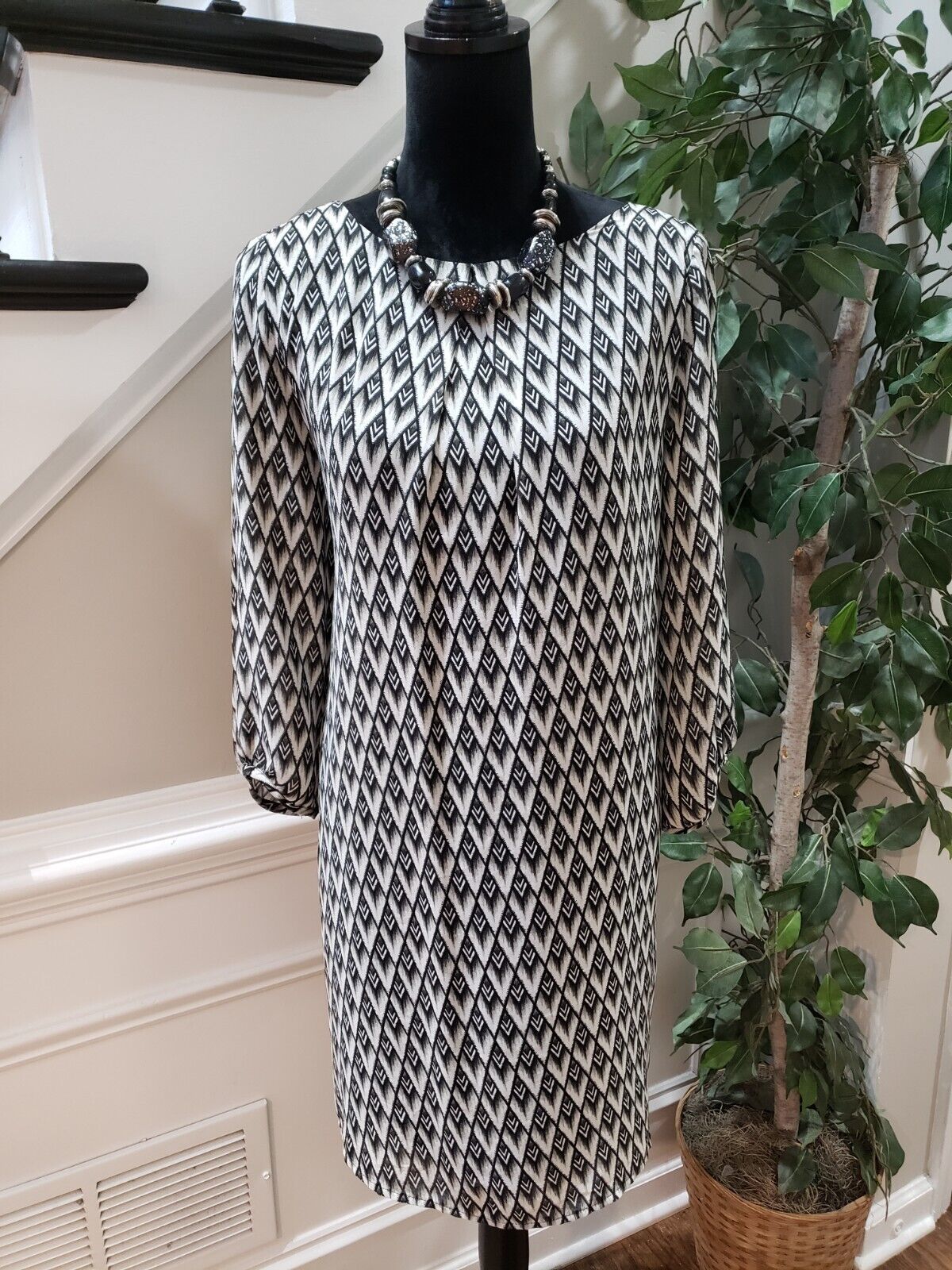 H M Women's Black White Polyester Round Neck Long Sleeve Knee Length Dress 14.