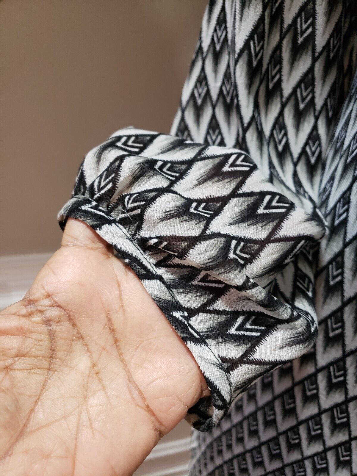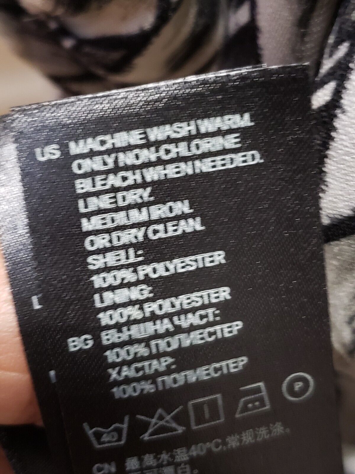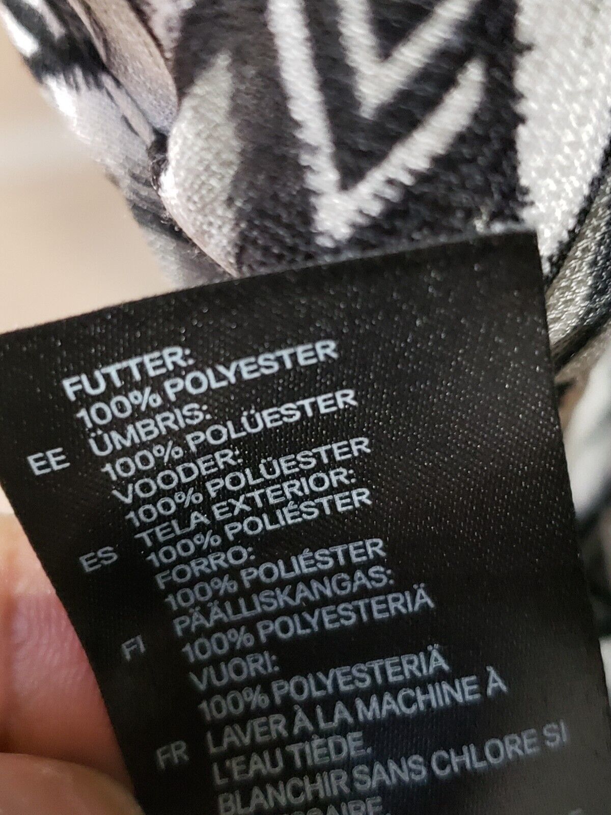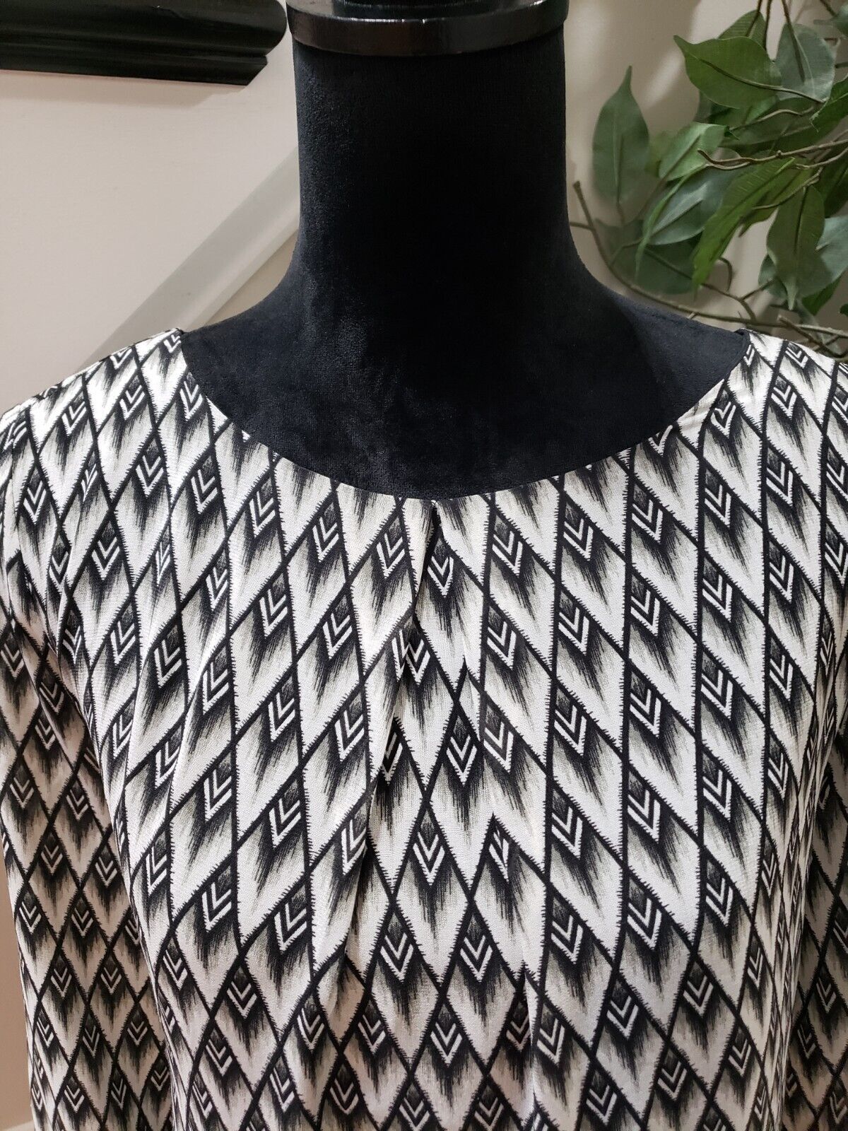 H M Women's Black White Polyester Round Neck Long Sleeve Knee Length Dress 14.
