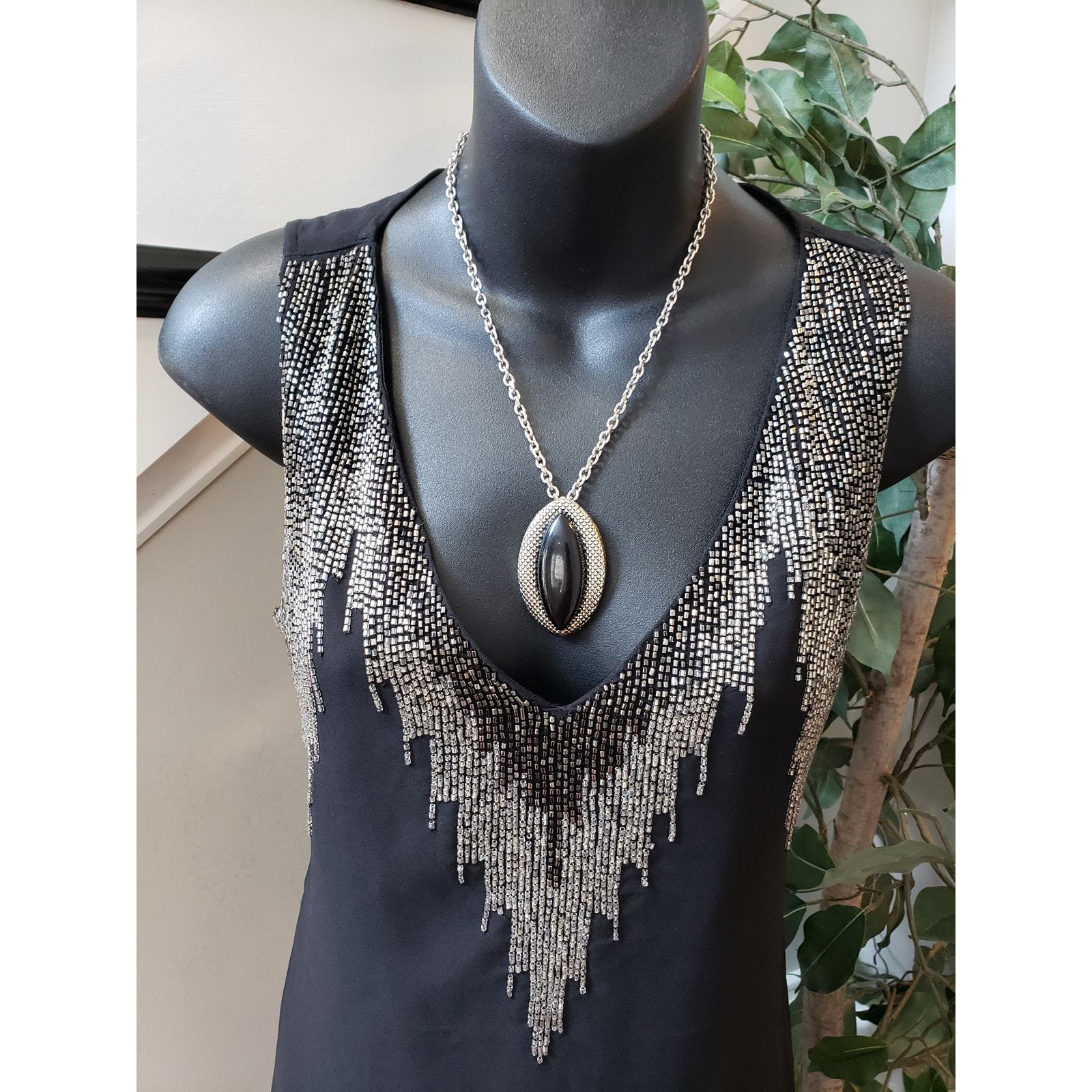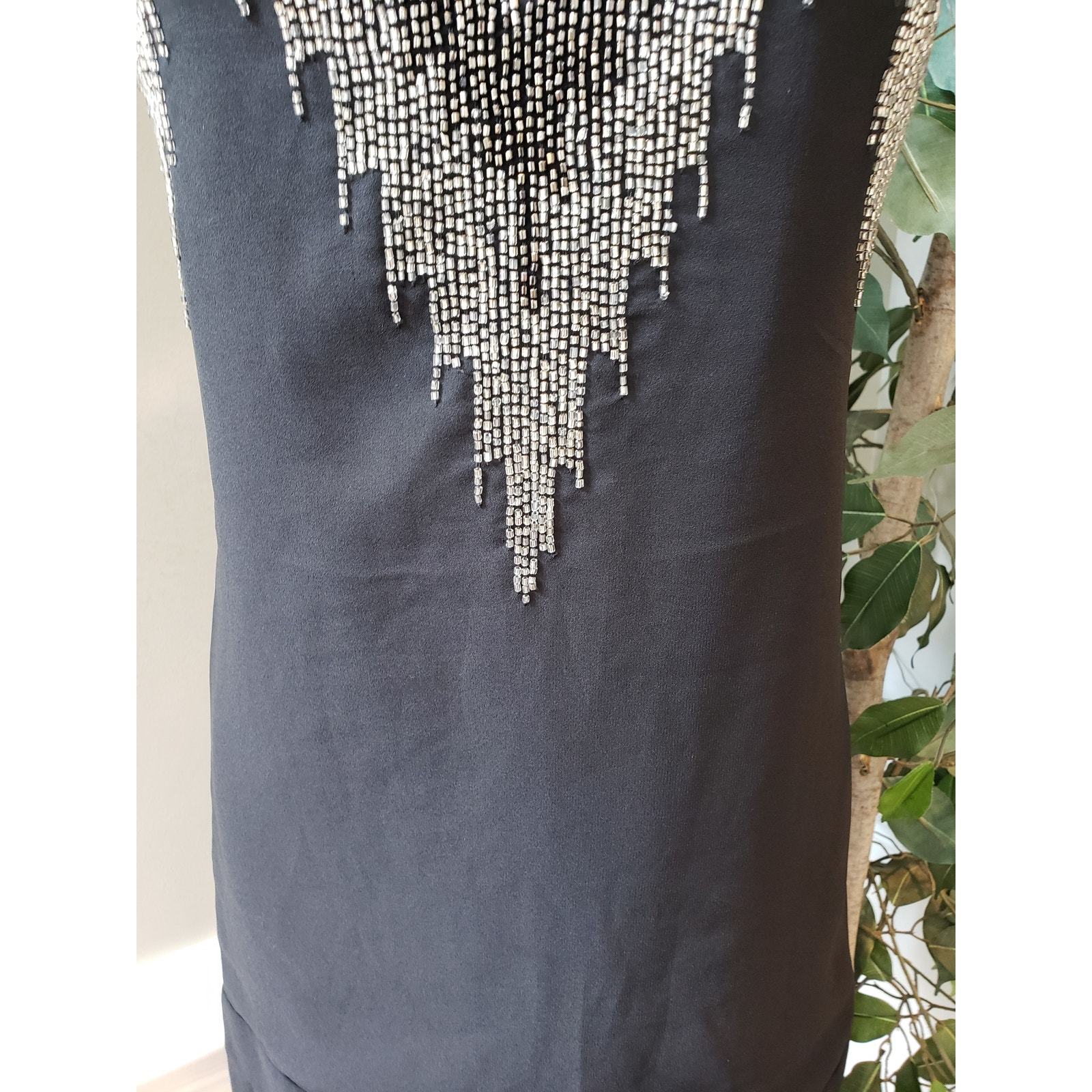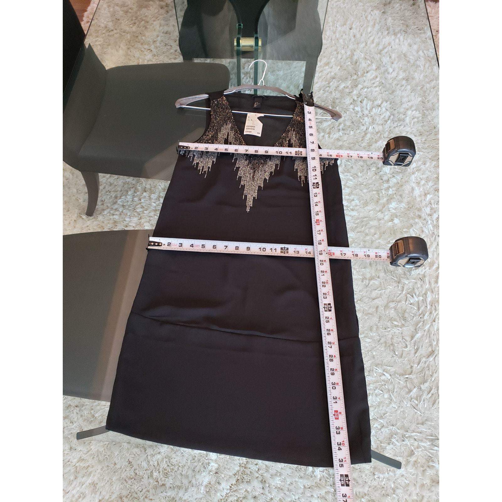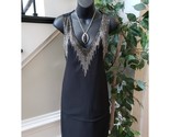 H M Shift Dress Women Size 4 Black Casual Sleeveless Beaded Deep V Neck Pullover