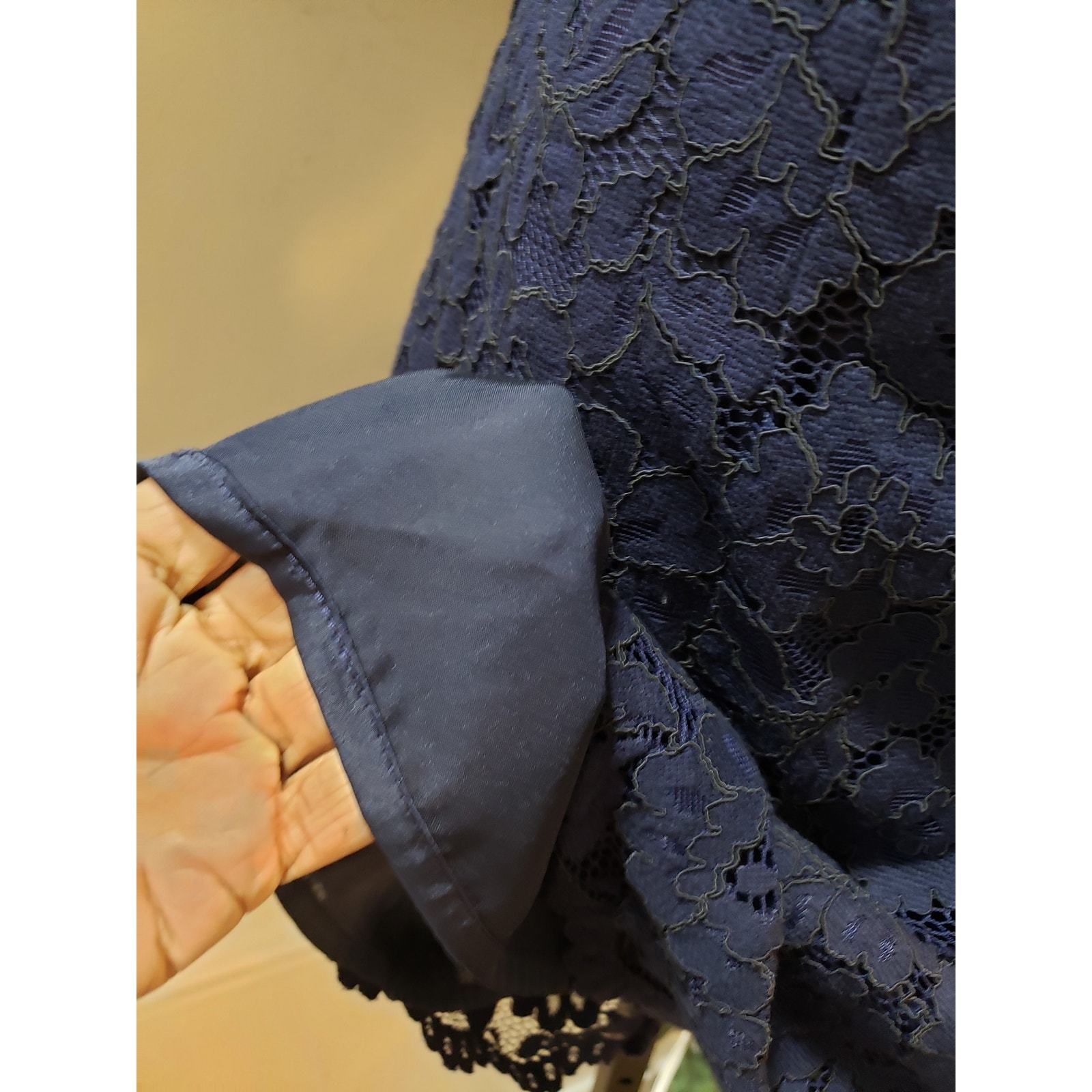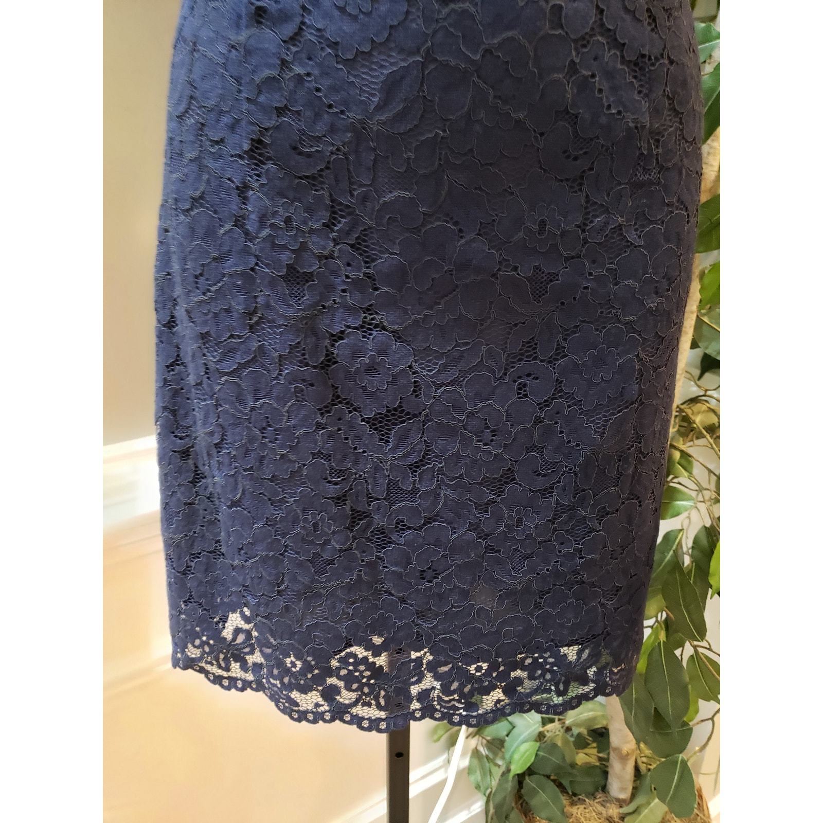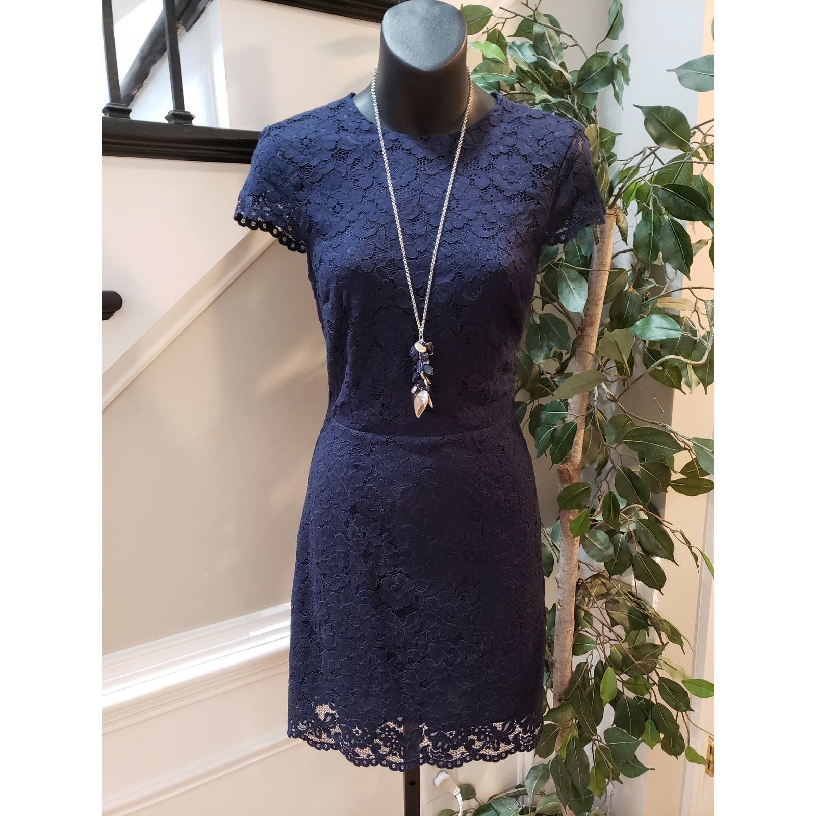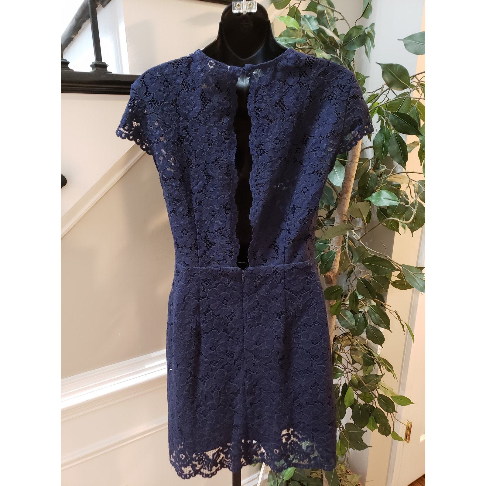 - H&M Sheath Dress Women's 4 Blue Floral Lined Short Sleeve Crew Neck Back Zipper