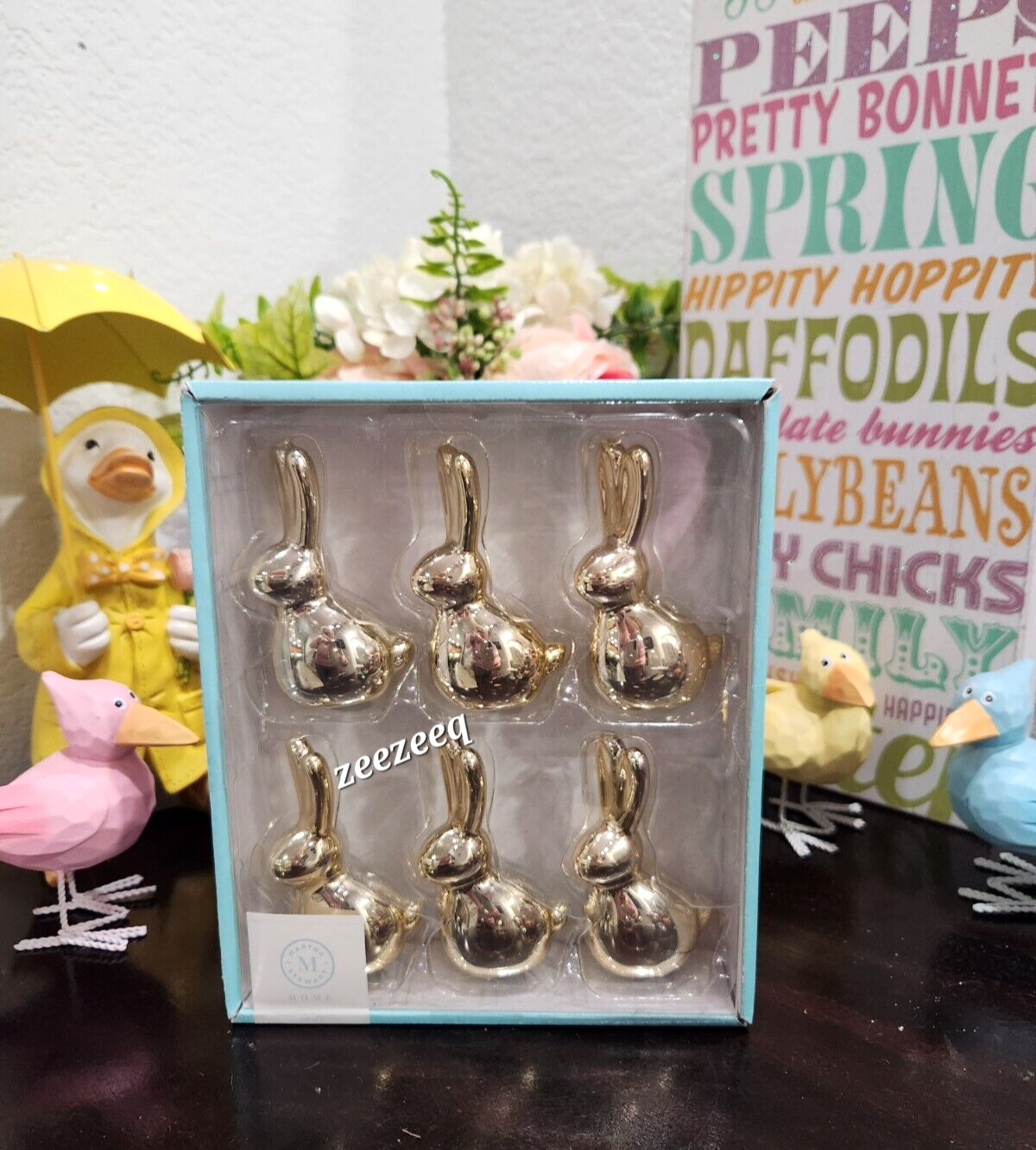 Up for sale are these adorable Martha Stewart figurines for your Easter decor. These are sooo cute! These are gold resin bunny mini figurines. You can place them on a tier tray or sitting on a cupcake stand or any tableotp. Measures approx 3.5" tall. New