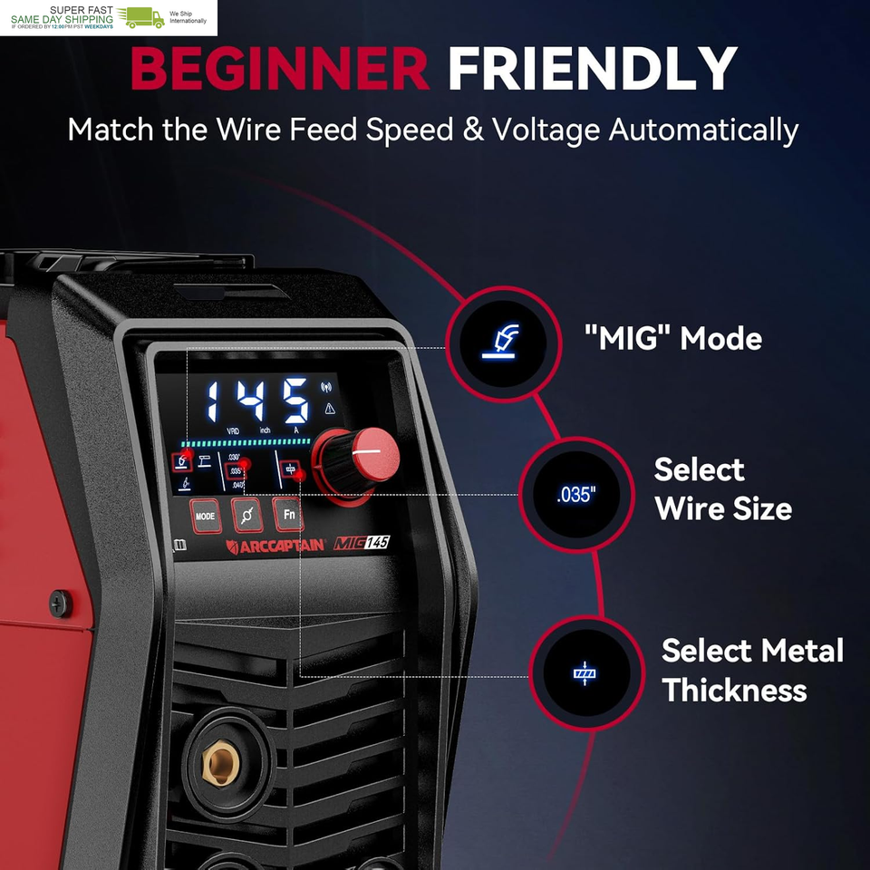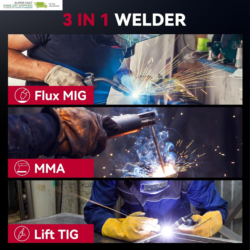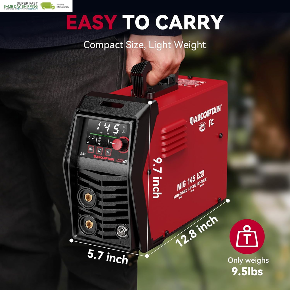 3-IN-1 WELDER: The ARCCAPTAIN 145A flux core MIG welder offers 3 modes: Gasless MIG, MMA, and Lift TIG (you'll need to buy a Lift TIG torch separately). It?s got you covered for all sorts of jobs?perfect for home DIY projects, outdoor fixes, farm gear, road equipment, and maintenance work.