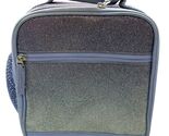 Durable lunch box with a glitter ombre design, insulated interior, and convenient compartments for organized storage. Easy to carry with a sturdy handle. ? Mesh side pocket for extra storage ? Insulated lining for temperature control ? Zip front compartment for small items ? Sturdy top handle for easy carrying Minor scuff on bottom; overall in excellent condition. Top to bottom = 10 inches, side to side = 8 inches, depth = 4 inches. Condition: Pre-Owned Good