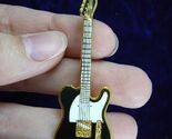 (M223-A) JEWELRY ONLY - NOT A REAL GUITAR! Miniature replica (2 1/4") of the Fender Telecaster, introduced in 1951, one of the first solid body electrics. Replica in sturdy jewelry clasp pin form for guy or gal is complete with two single coil pickups and slanting back pickup, with cover removed. NOTE the Fender signature on the headstock.