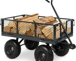 - Heavy Duty Grey Steel Garden Utility Cart Wagon with Removable Sides
