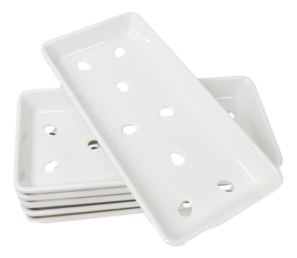 - Pack Of 6 White Neta Zara Sushi Case Sashimi Plates With Drip Holes 8" By 3.75"