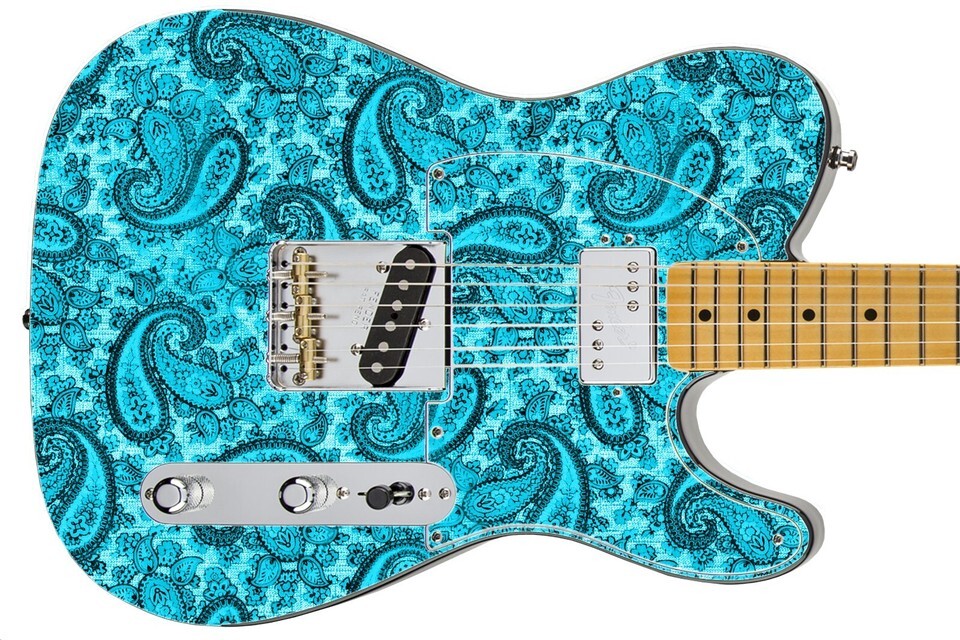 Guitar Skin Axe Wrap Re-skin Vinyl Decal DIY Ocean Blue Paisley 1968 Special GS 203