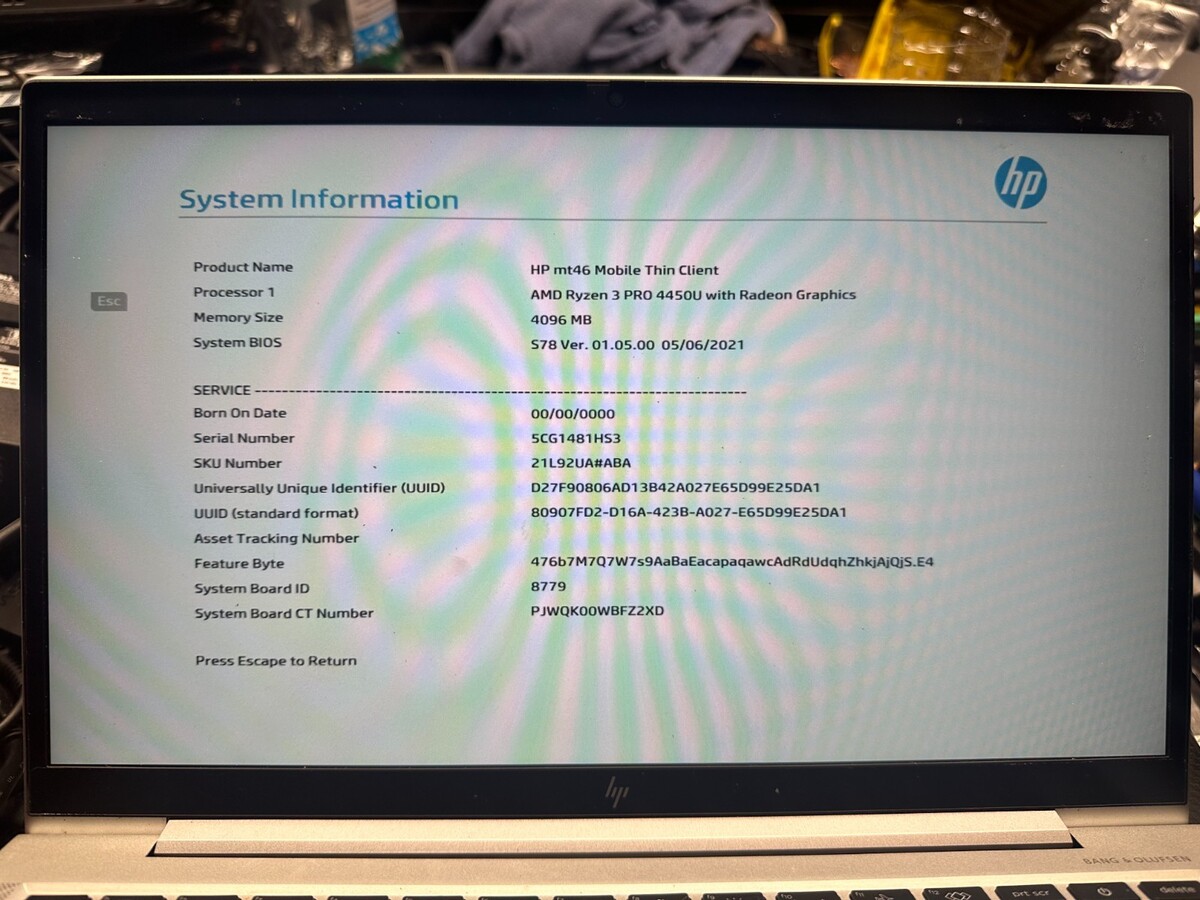 HP mt46 Mobile Thin client AMD Ryzen 3 Pro 4450u Radeon Motherboard m16119-601