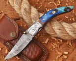 - Hand Forged Damascus Folding Blade Hunting Skinner Pocket Knife Case Tactical
