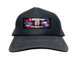 Show off your style with this black foam baseball cap with custom high-quality heat transfer durable graphic, featuring a wide brim and mesh back panel for breathability. The adjustable strap ensures a comfortable fit for all head sizes. Perfect for fall, this unisex cap is a great addition to any wardrobe. The USA theme and logo mesh make it a stylish accessory for any outfit. Made USA with high-quality materials, this cap is a must-have for any hat collection.