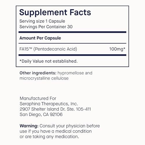 Fatty15 C15:0 Pentadecanoic Acid Supplement The Longevity Nutrient - 180 Vegan Capsules - 3X Cellular Benefits of Fish Oil EPA Omega 3 Supplements - Liver Support Mitochondrial Health