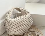 - Genuine Full-Grain Leather Woven Hobo Bag, French Polene Style, White Color