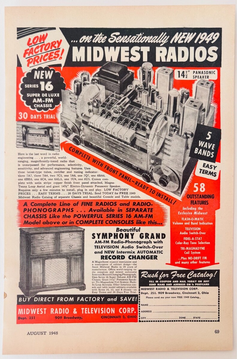 1948 Midwest Radio Series 16 Super Deluxe Advertisement Vintage Electronic F15T3