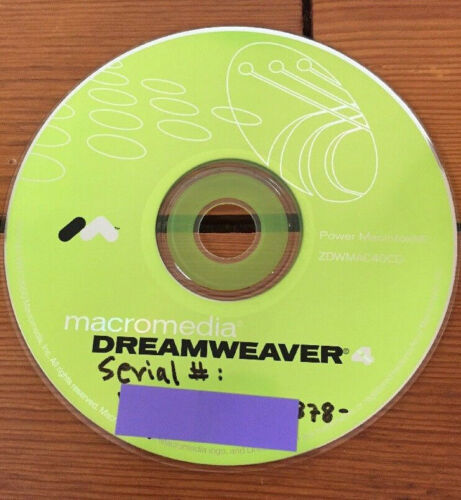 - 2000 Macromedia Dreamweaver 4 HTML Web Page w Serial Number Mac Software CD