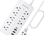- 25FT Surge Protector Power Strip Extension Cord with USB C, Flat Plug Power Str