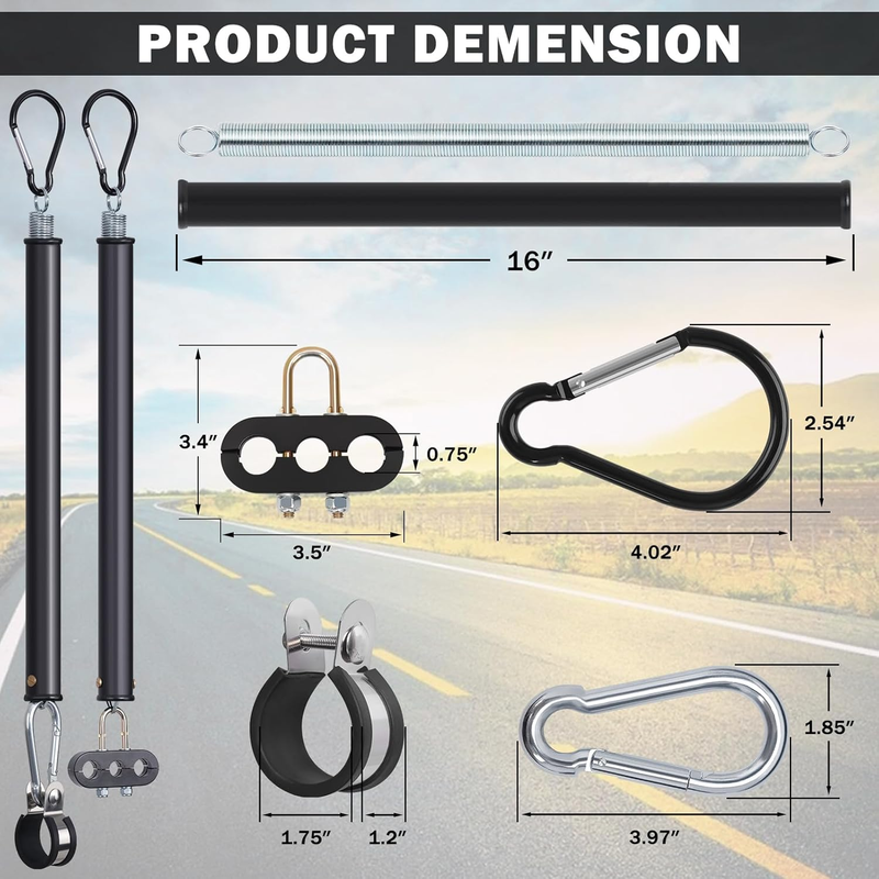 - 2PCS 16" Single Tender Spring Kit 3-in-1 Hose & 3-Hole Clamp Holder for Semi Tru