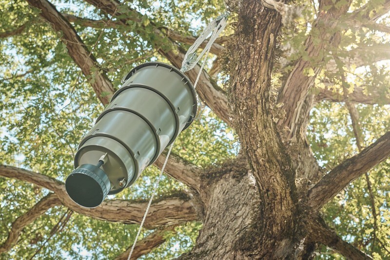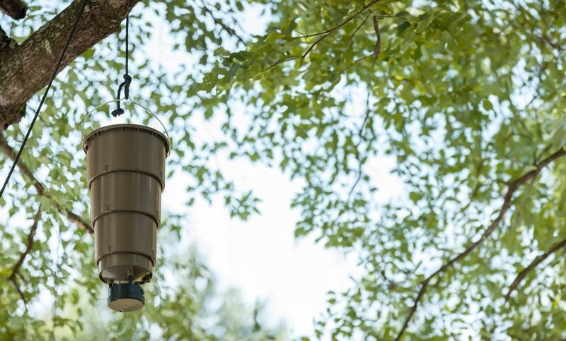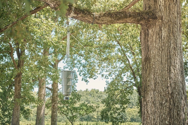 Hang the 5 Gallon Moultrie Deer Feeder and watch the deer gather around