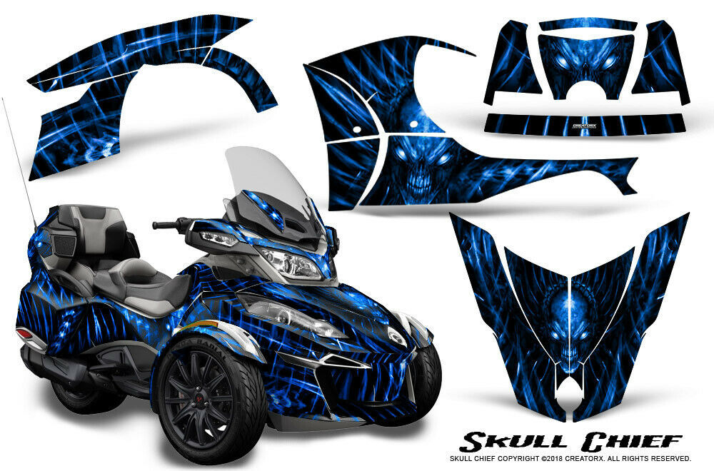 - CAN-AM BRP SPYDER RT 2014-2019 CREATORX GRAPHICS KIT DECALS SKULL CHIEF BLUE