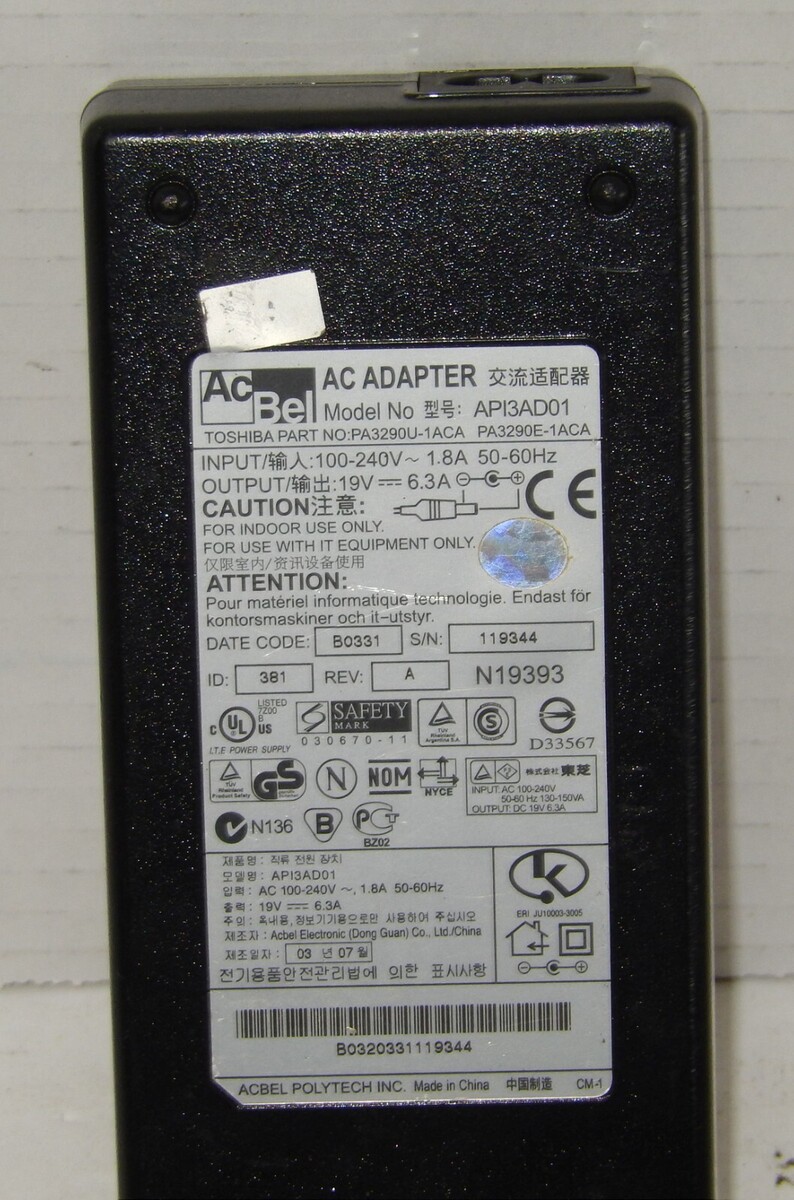- ACBEL Power adapter API3AD01 Laptop Battery Charger Input 100-240v Output 19v