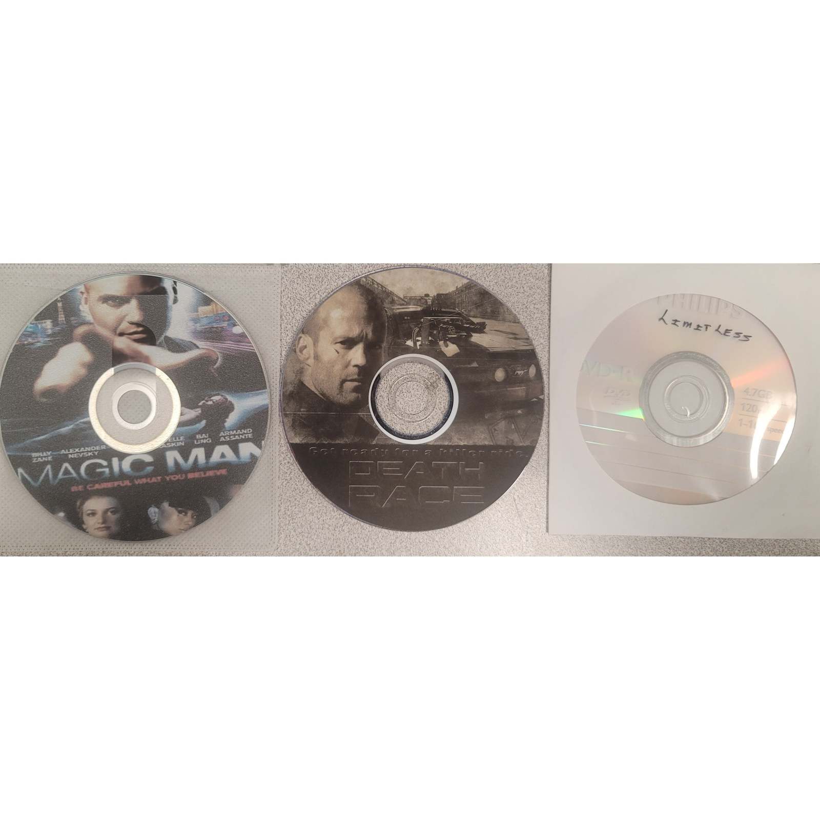 - Action DVD Triple Play: Magic Man, Death Race, Limitless