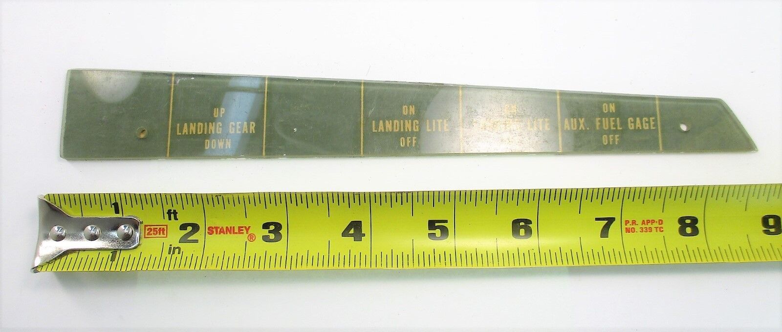 This item was purchased from an aviation surplus sale. We do not know the history of it. It is in good cosmetic condition. It is not tagged as to the aircraft type, part number, or the condition status. It is plastic and measures about 8 3/4" in overall length. We are not sure if indicator lights go behind it, or if it is just a reference placard. We are not able to test it. It only comes with what is shown in the pictures.
