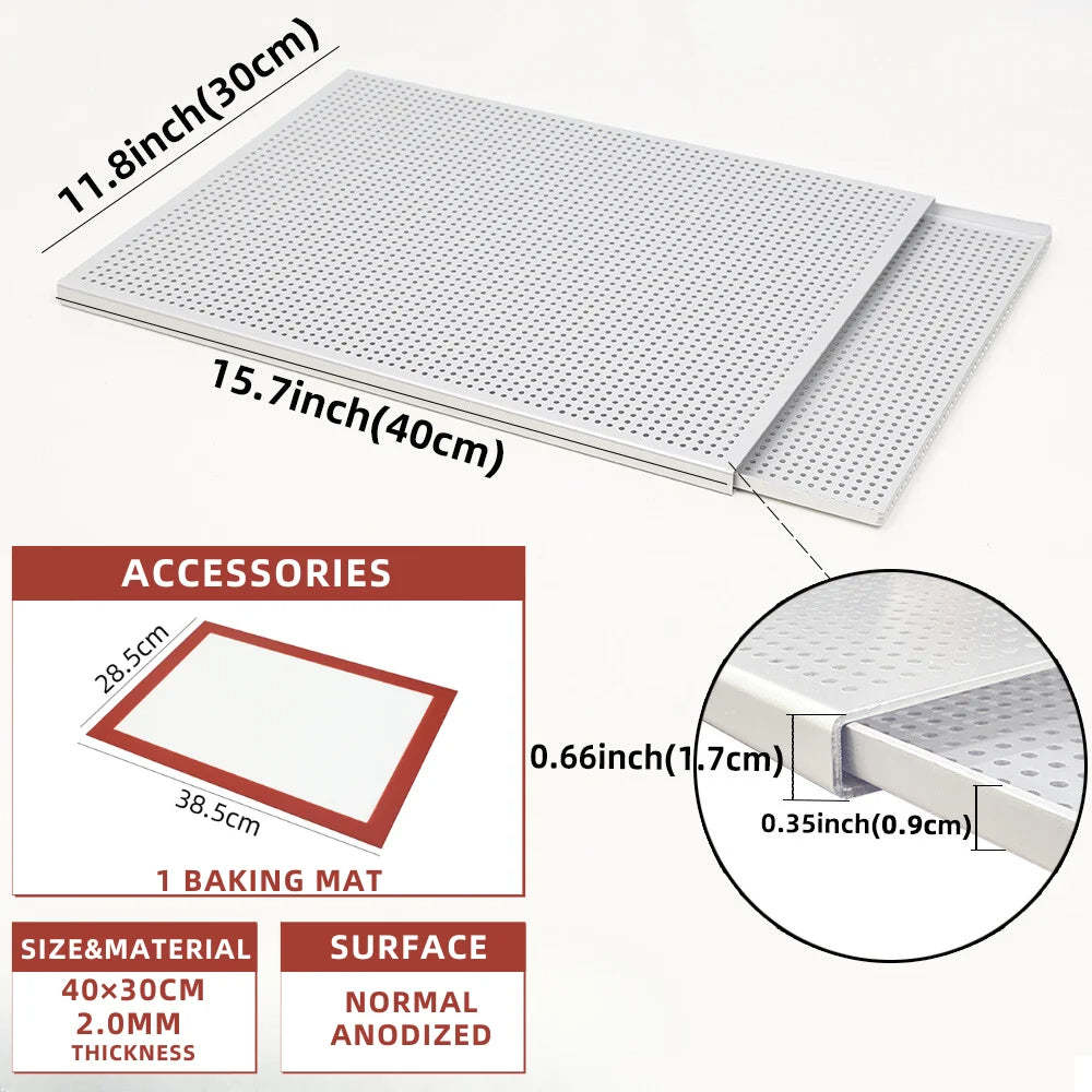 - Anygleam Baking Tray With 1Pc Silicone Mat Silver Rectangular Perforated Pastry
