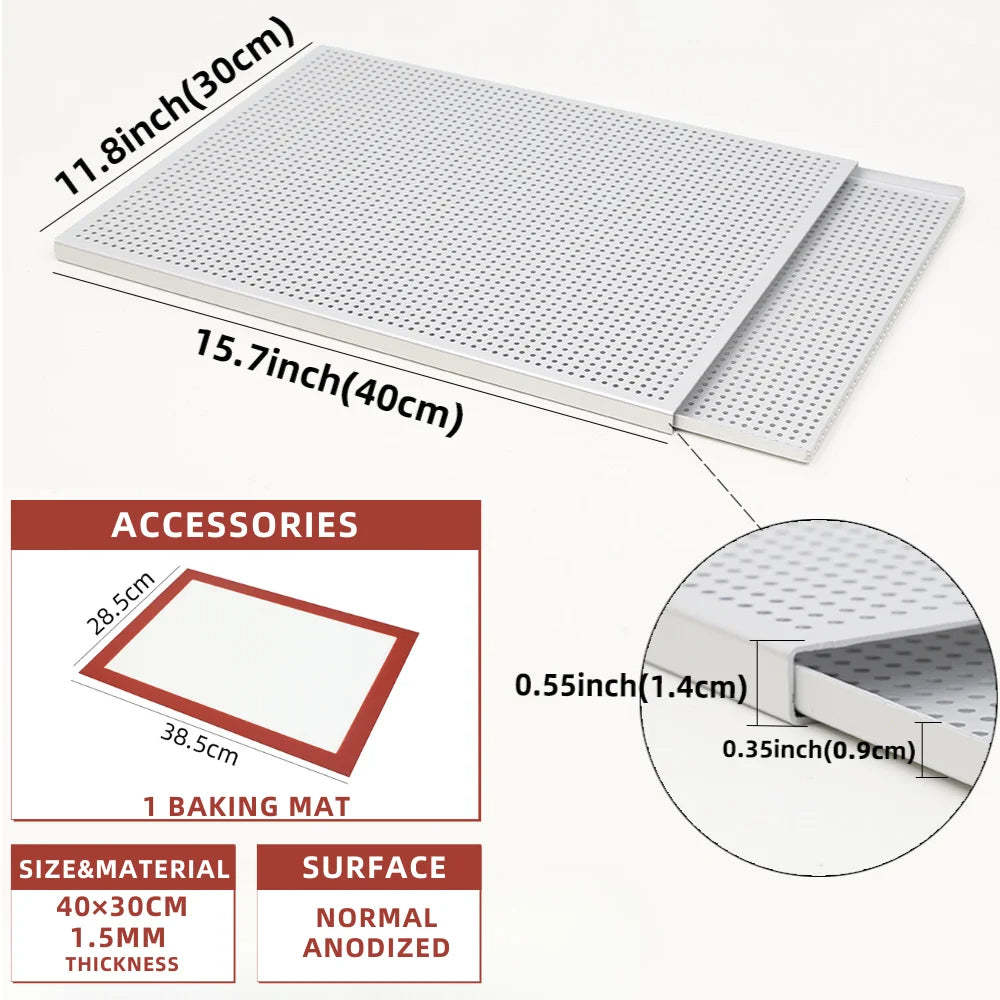 Anygleam Baking Tray With 1Pc Silicone Mat Silver Rectangular Perforated Pastry