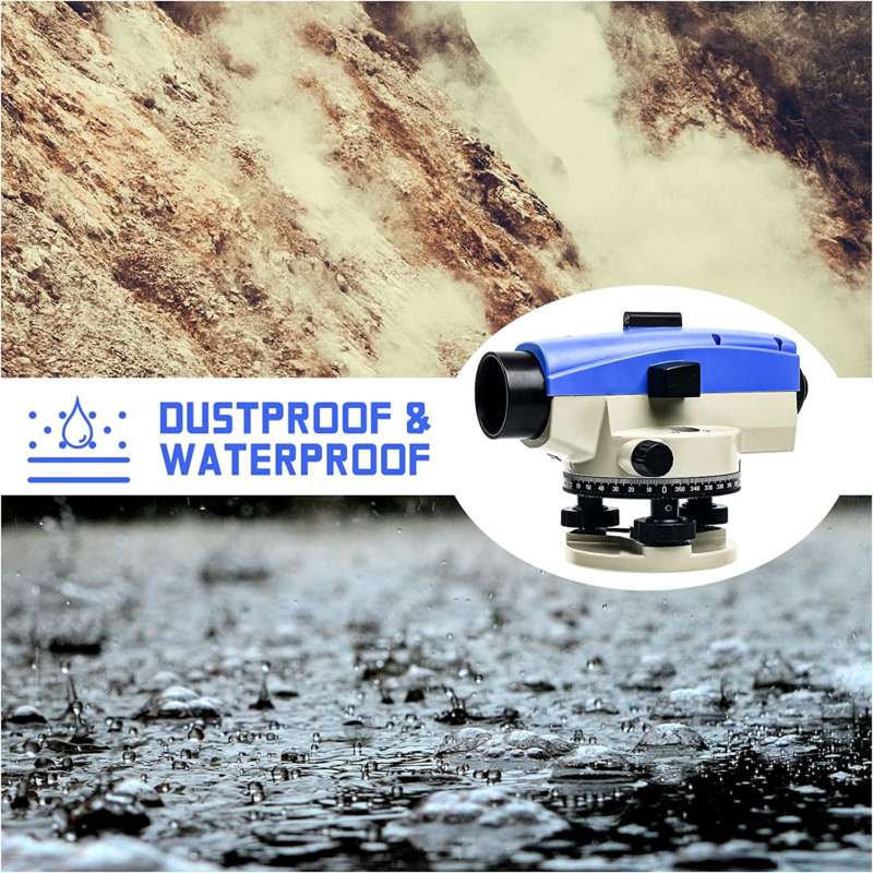 Our automatic optical level is mainly covered by sturdy metal; it features IP54 protection for weather resistance, dust resistance, and durability.