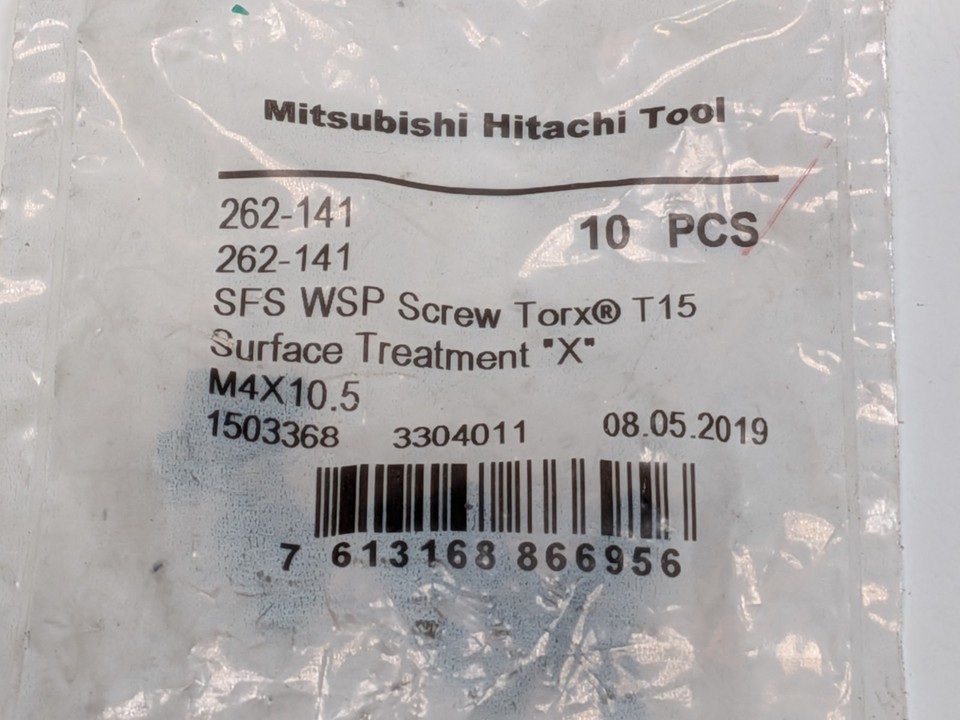 - Bag of 10 Mitsubishi Hitachi Tool - INSERT SCREWS M4 X 10.5 T15 Part# 262-141