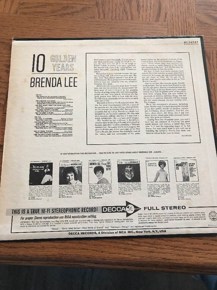 - BRENDA LEE - 10 GOLDEN YEARS - ORIGINAL 1966 LP Record Album -
