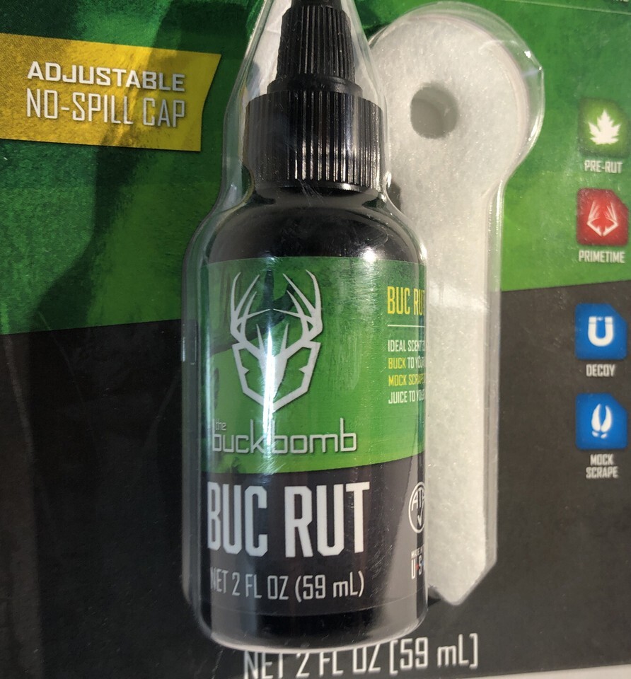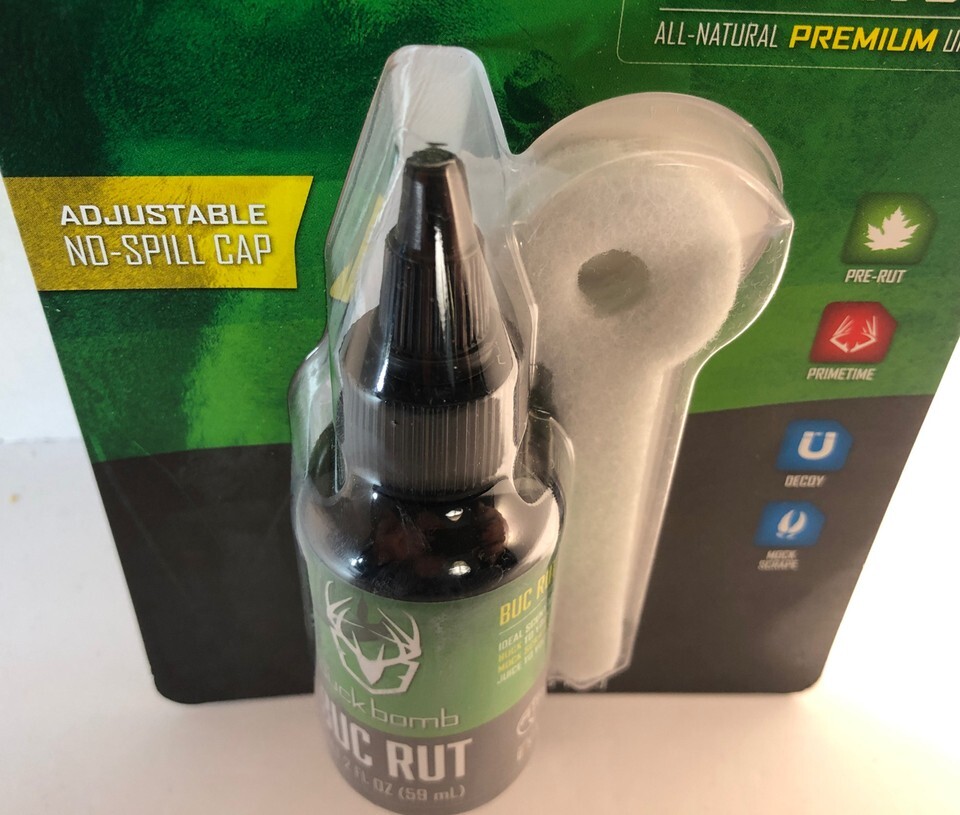The Buck Bomb Buc Rut 2 oz. With Adjustable No-Spill Cap - Hunting. Condition is "New". Shipped with USPS First Class.