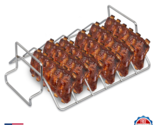 ?2 in 1 Rib Rack?This innovative smoking rib rack features a unique dual-purpose design. One side is designed for preparing ribs, while flipping it over allows you to smoke and roast turkey! This versatile design enables multiple cooking functions while saving you money.,?Enhanced Compatibility?The grill rack is compatible with smokers, gas grills, and charcoal grills. It fits perfectly in 18-inch or larger charcoal smokers and Kamado ceramic grills (such as Big Green Egg), and is ideal for Weber, for Pit Boss tray smokers, for Traeger grills, ovens, and other large outdoor grills.,?Premium Food-Grade Stainless Steel Construction?Our replacement rib rack for Big Green Egg is crafted from high-strength, food-grade stainless steel. Free from harmful coatings or chemicals, it offers excellent heat resistance, corrosion resistance, and long-lasting durability.,?Optimized Grilling Space?The smoker racks for meat can hold up to 6 full racks of ribs. Its vertical design separates the ribs for even cooking, making grilling quicker and simpler. Raised fixed handles allow for easy handling with oven mitts.,?Versatile Barbecue Applications?The turkey roaster rack is ideal for roasting turkey, poultry, ham, lamb, chicken, and vegetables. Perfect not only for daily cooking and holiday celebrations like Christmas and Thanksgiving, but also for outdoor gatherings and events.