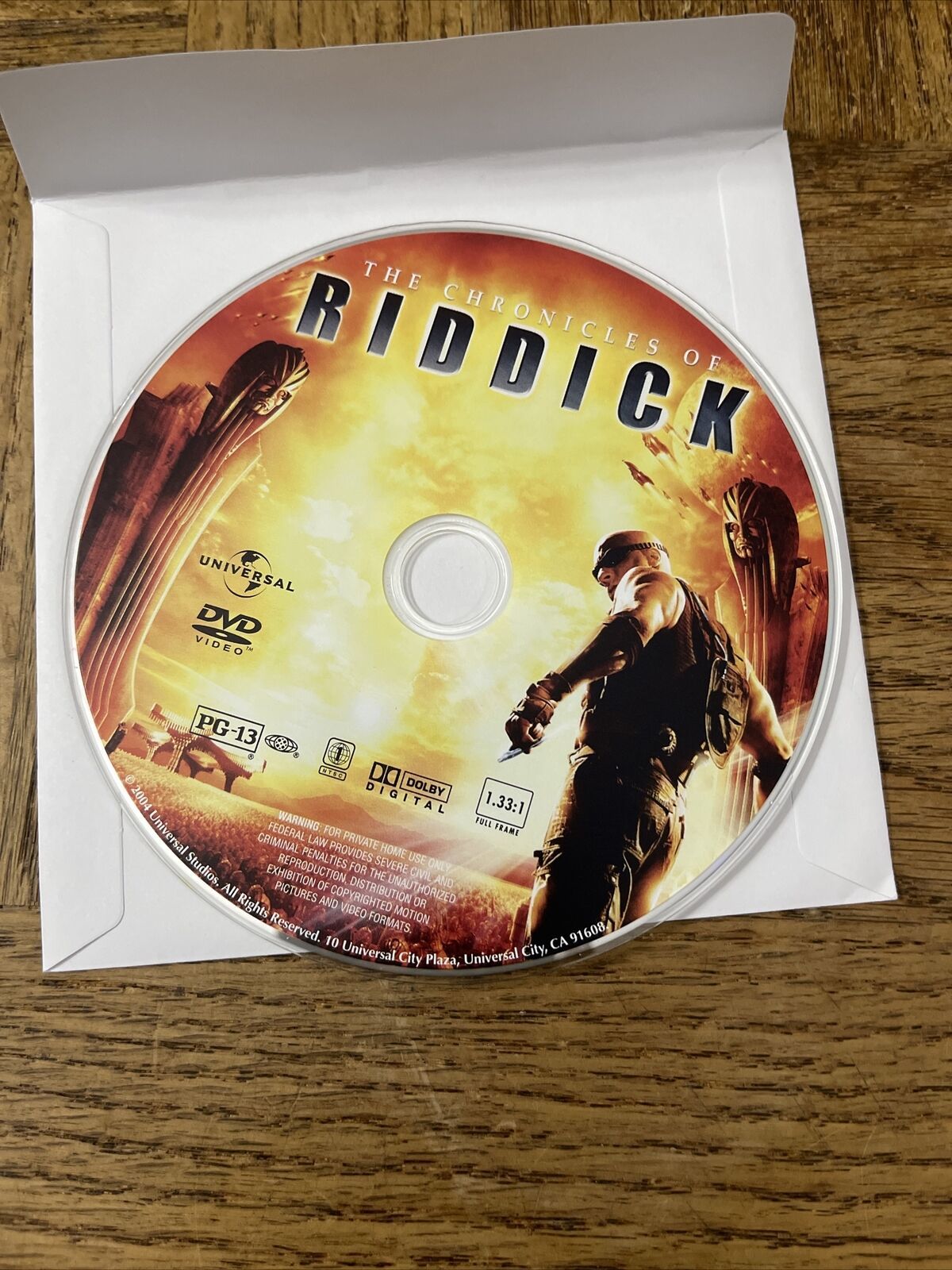 Experience the epic adventure of The Chronicles of Riddick on DVD. Immerse yourself in the captivating world of this sci-fi action film, where Vin Diesel stars as the enigmatic anti-hero Riddick. This DVD is perfect for fans of the genre and those looking for an adrenaline-fueled movie experience. The disc is compatible with any standard DVD player and is perfect for a movie night with friends or family.